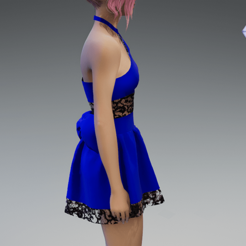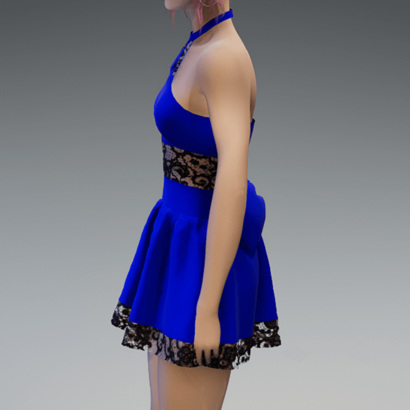 Royal Blue Cute Partydress with a Bow and Lace