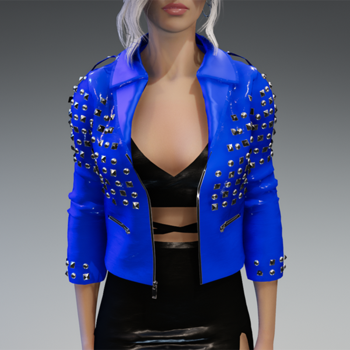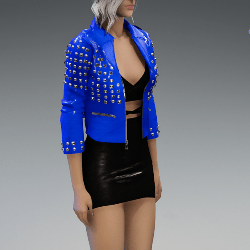 This leather jacket comes with a lot of rivets. You can also find the dress in my store. And please remember to remove your hair before adjusting the jacket. otherwise there will be problems with the collar. Enjoy! <3
