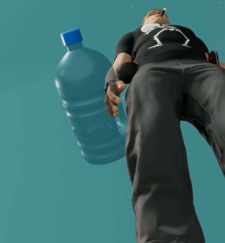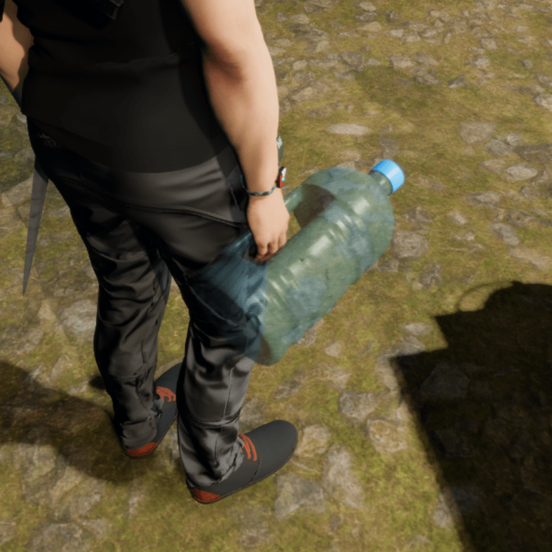 A giant water bottle to carry with you on those hot summer days. Complete with see-through plastic body that blurs the image you see behind it like a real bottle! {Male Ring Attachment}