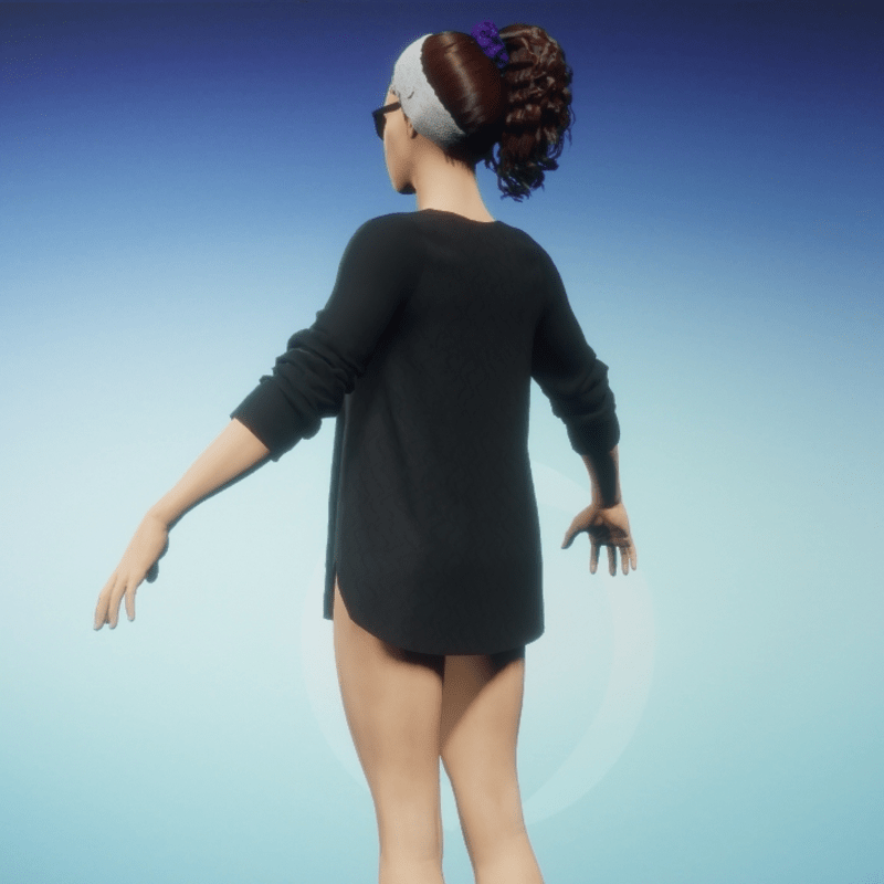 This loose fitting top has a scoop neck, pushed up sleeves, and a long gently gathered bodice. The sleeves and cuffs are of loose fitting spandex with the bodice made of a sculpted knit fabric. This top matches the JRNY - Strapped Leggings. Remember to use animate cloth to make the garment fill in. You may also tug and pull at the garment while in animate cloth mode to achieve your own unique style.