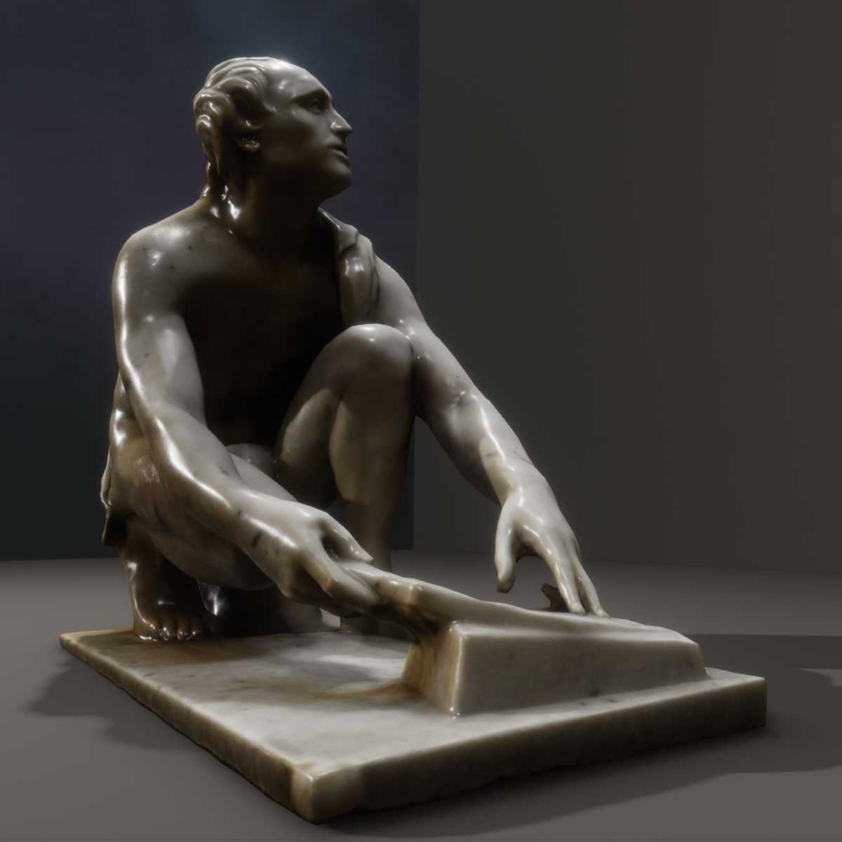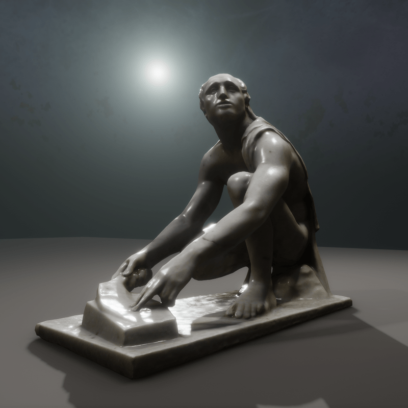 This is a scan of a statue in the Musée des Beaux arts de Quimper. Anonymous 19th century copy of the 3rd Century BC Statue (which is itself a copy of an original hellenistic model). Fully customizable Should you find it too shiny, all the maps are available in this listing, except metal which is black. I also included ambient occlusion on top of wireframe, it might help you locate what is where in the textures. Object statistics : Triangles : 14552 Textures : 4 Size (KB) : 3136