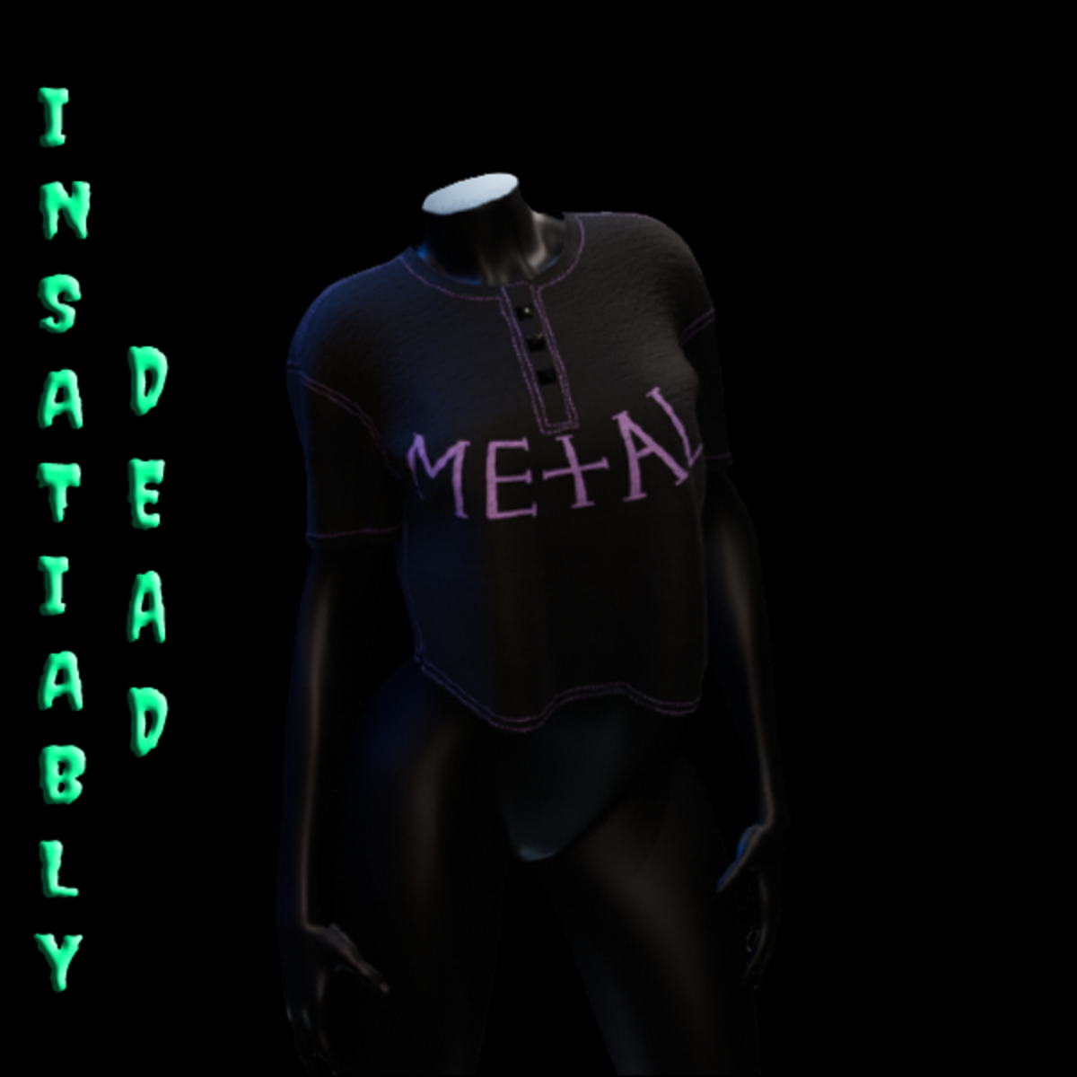 Buttoned Crop Top with "Metal" on the front. Created with Marvelous Designer with Avatar 2.0. Adjustment may be required! PLEASE DON'T FORGET TO RATE AFTER YOU BUY! THANK YOU :)! https://help.sansar.com/hc/en-us/articles/115005693363-Fitting-Marvelous-Designer-clothing-to-your-avatar