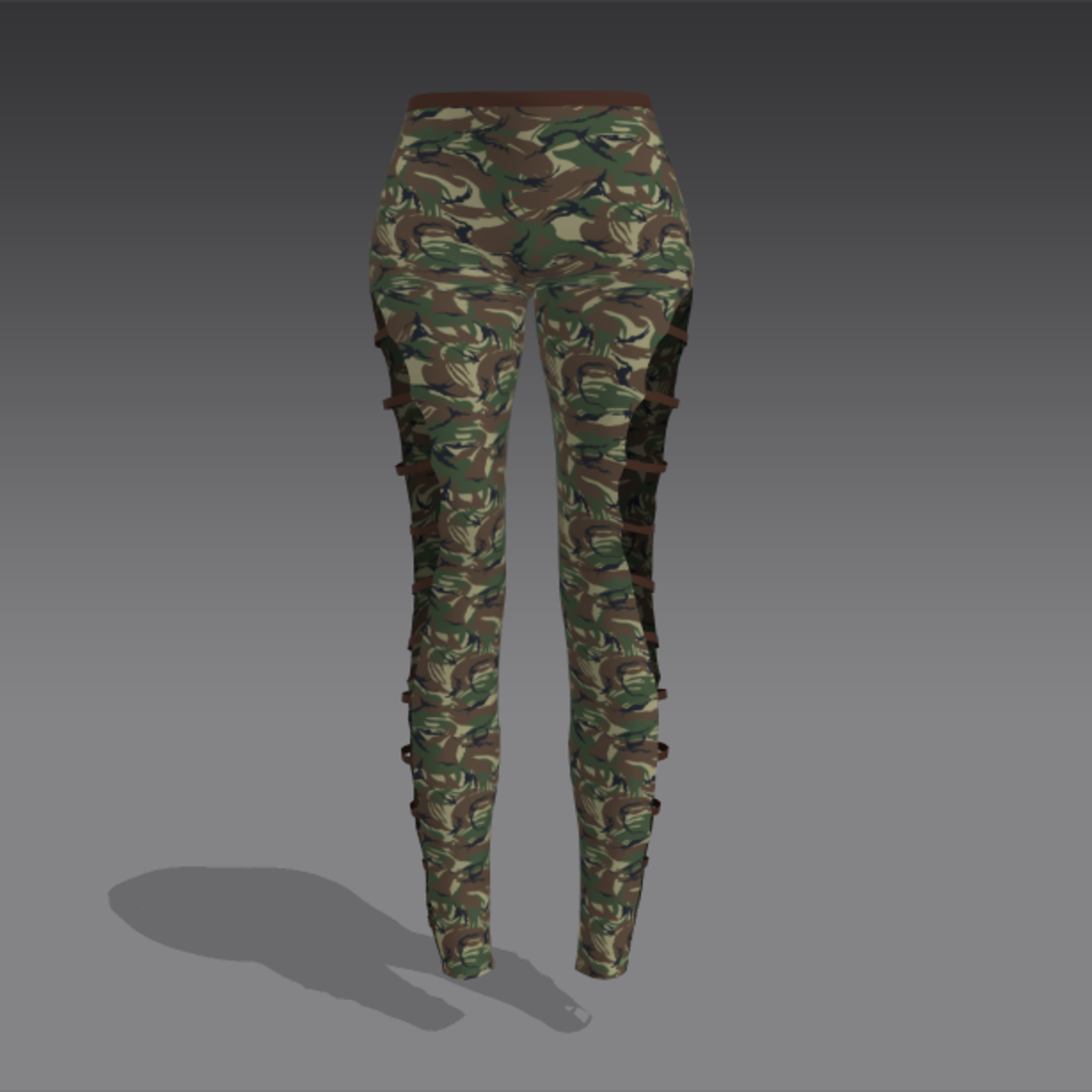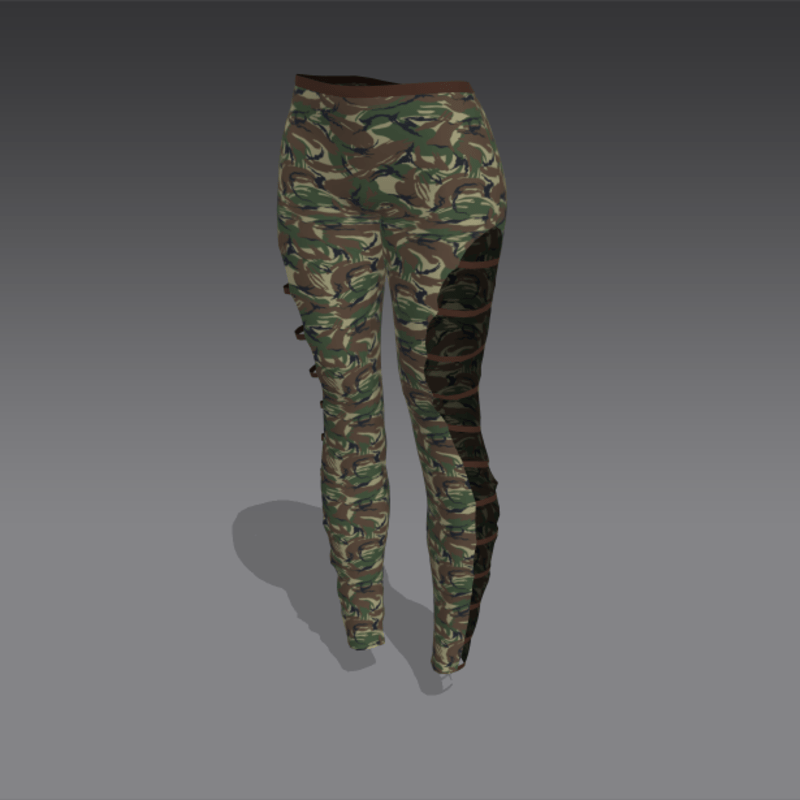 Green Camo Leggings - Brown Straps No resell/retexture/recolor. Made in MD S$10 If you notice skin clipping through the garment: - Click Adjust Clothing You should see the garment fit to your avatar without clipping. Contact me in-game with any questions/comments/concerns.