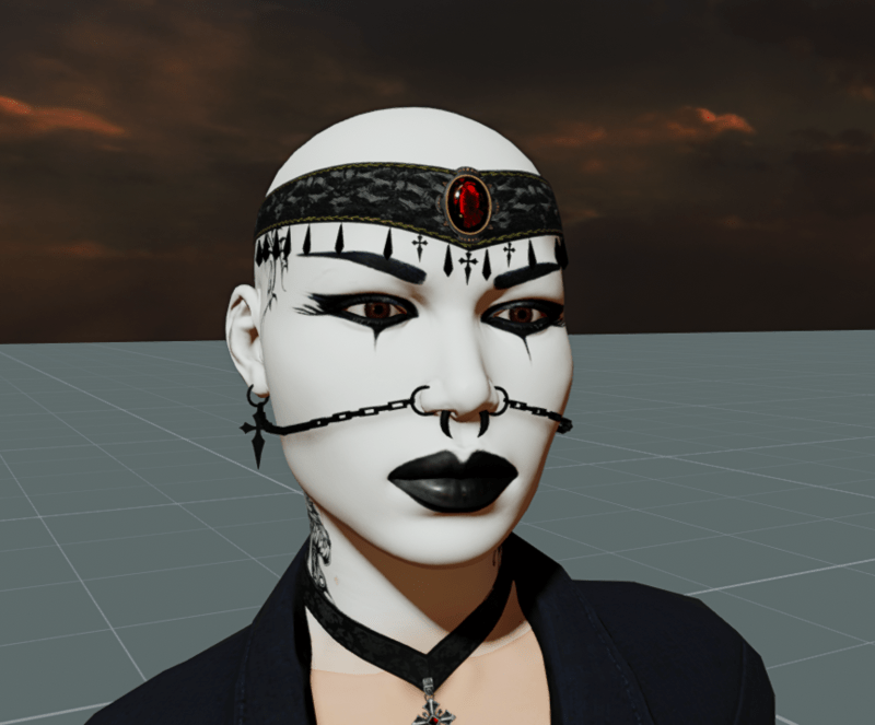 Dual goth style nose/ear chains with black earring crosses and nose earring horn..