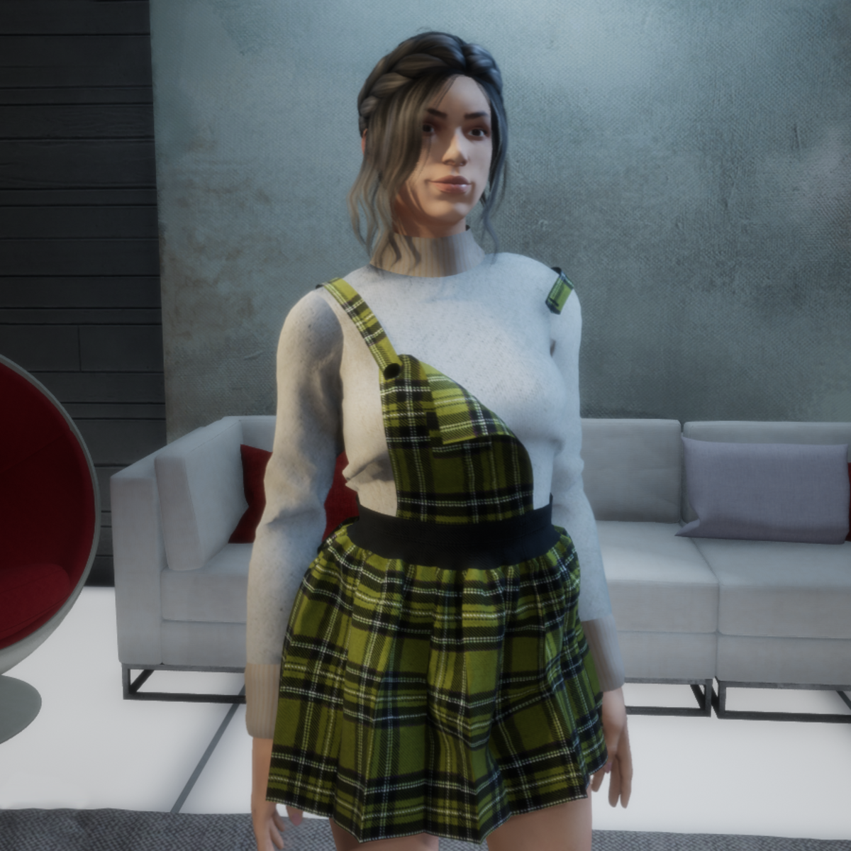 Mini dress in scottish  wool fabric  ACID GREEN