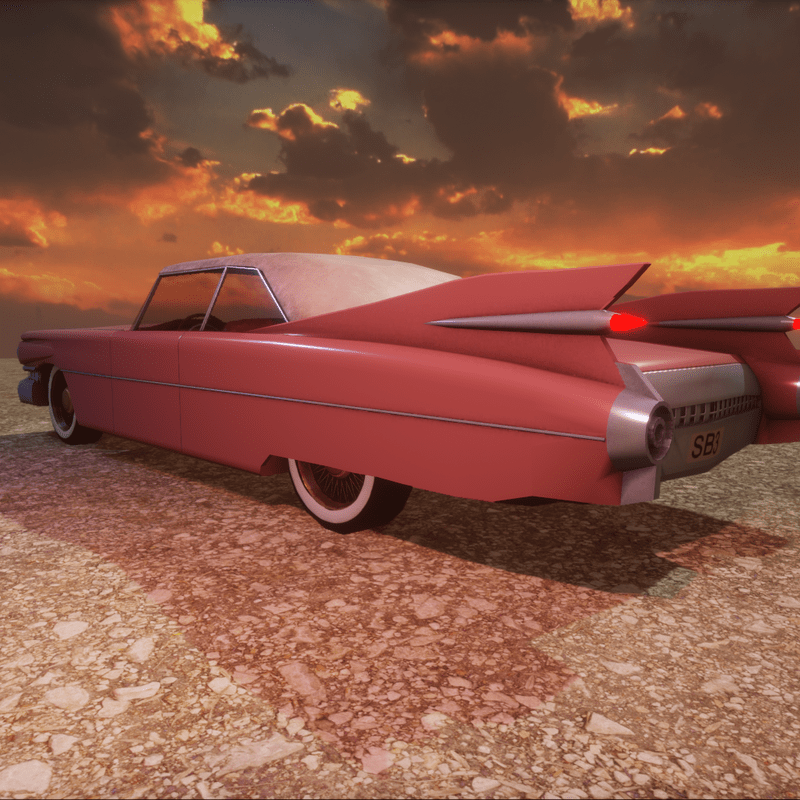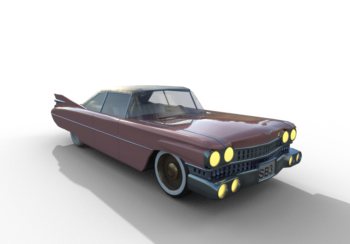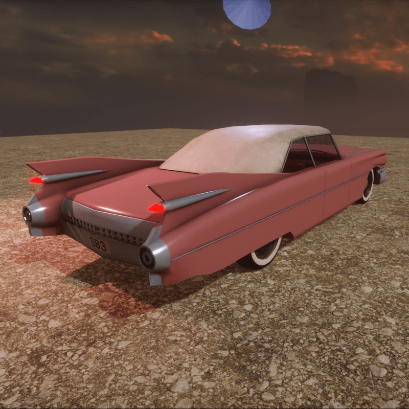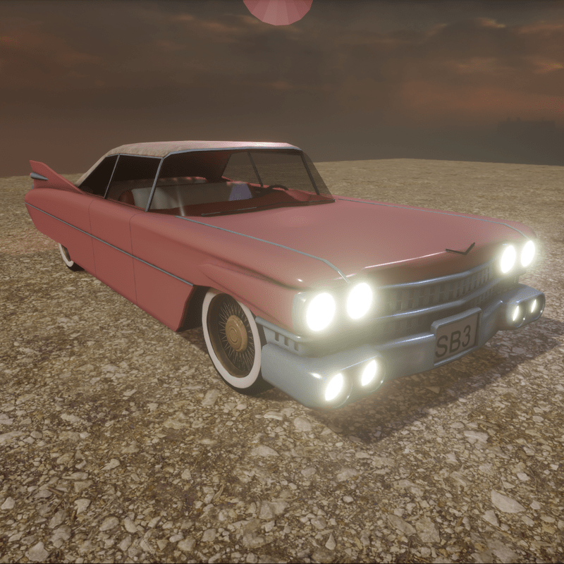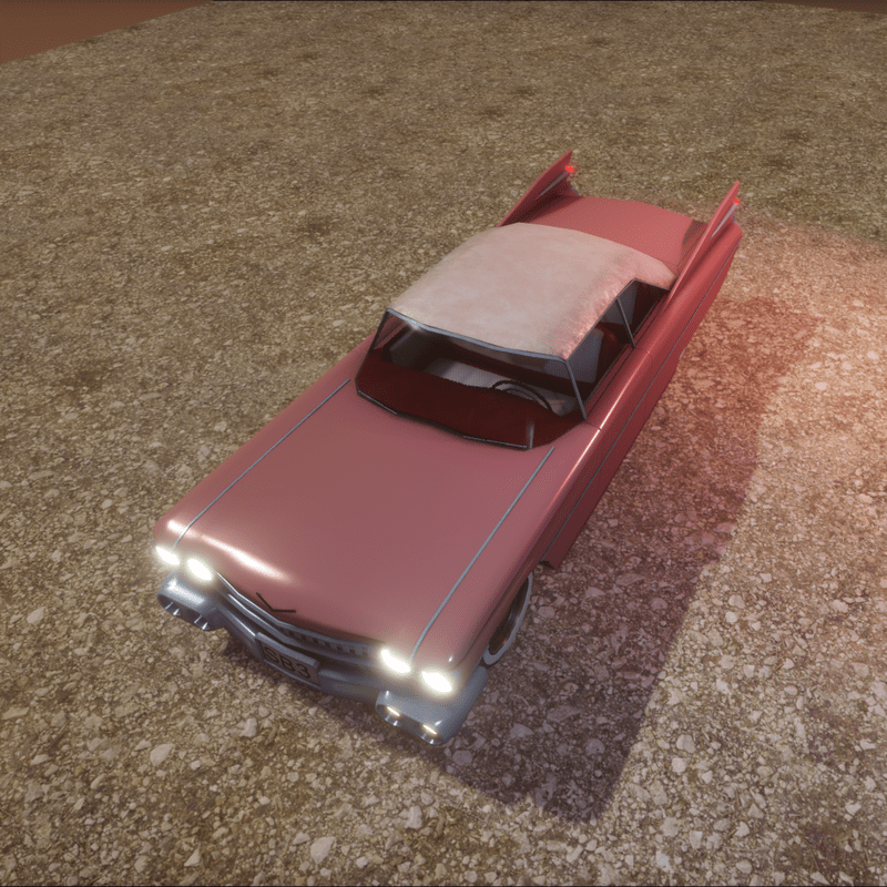 Old Car with collision model (front lights on).