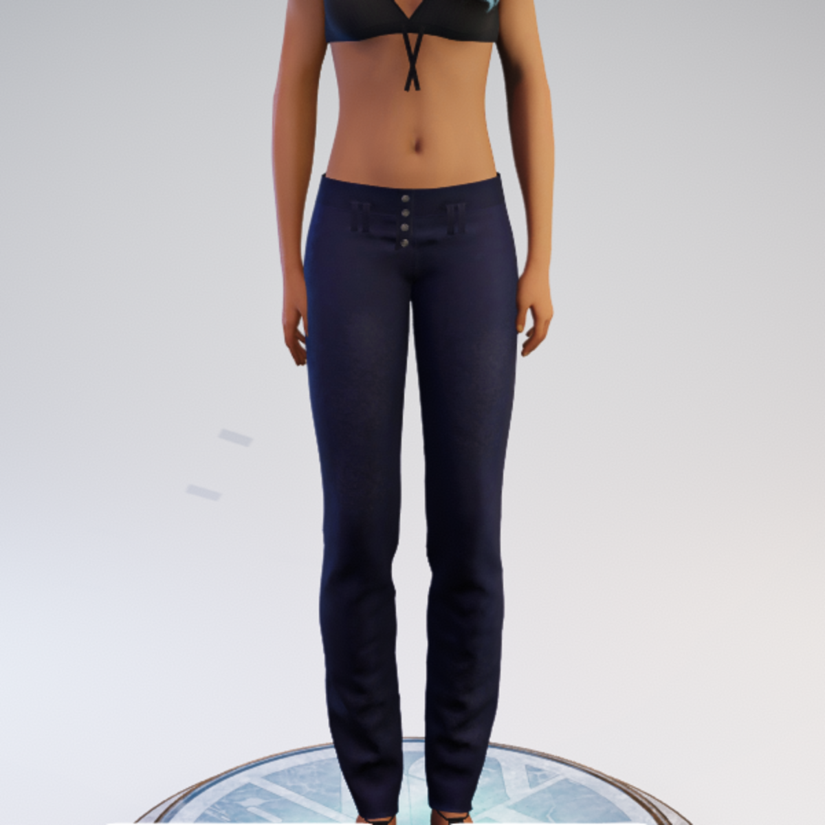 Buttoned Hip-hugger Pants - Brushed Denim - Blue