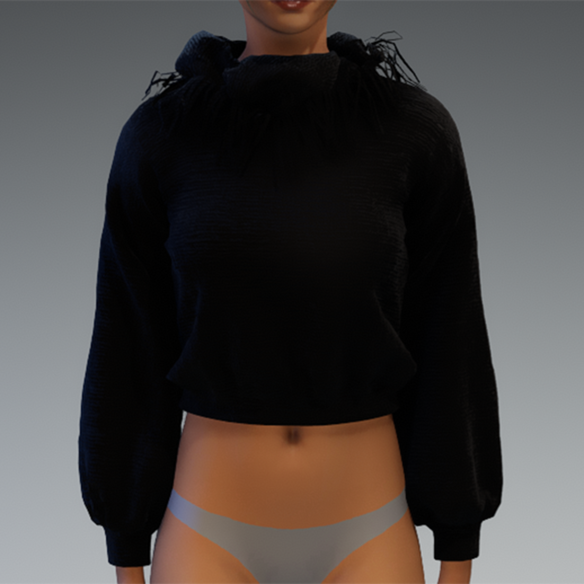 Messy fringe neck black sweatshirt
