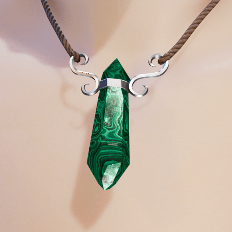 Male fitted glowing Malachite pendant decorated with two silver swirls and hung by Hemp thread. The glow is not constant but a very magical smooth glow that pulses in and out of vision. Made by NovaVoidSpirit Glowing Example Gif: https://gyazo.com/d4bec27f1fe9db45740b2de66ecea866