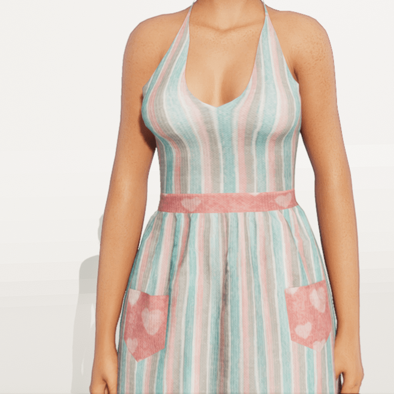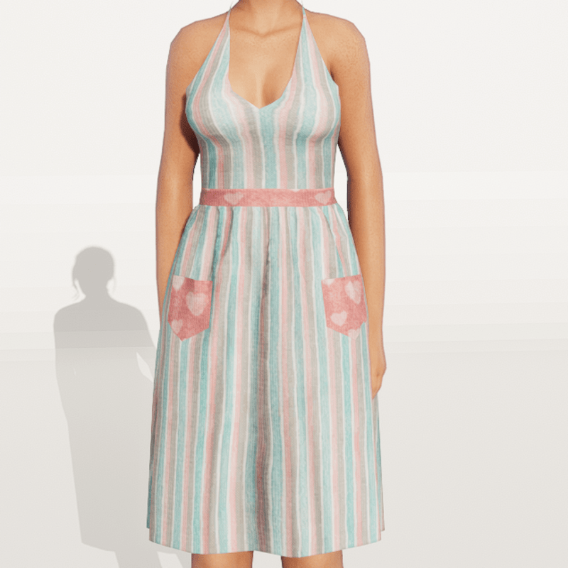 Vintage Halter Top Dress Check out my store for more great fabric choices. Made in Marvelous Designer and can be adjusted to fit most avatars. Created on a custom avatar, slightly curvier than AV2.0, to allow for a better custom fit. May require transform and adjust tools. Pictured with Alina and AV2.0 Try the Free gift version to assure fit, located here: https://store.sansar.com/listings/d779fc58-3d59-42fe-ac1d-335209c2ffb0/st-valentines-day-gift-2020-nannas-attic---vintage-halter-dress----pattern-8 Visit my world here: https://atlas.sansar.com/experiences/lonaleelancaster/lona