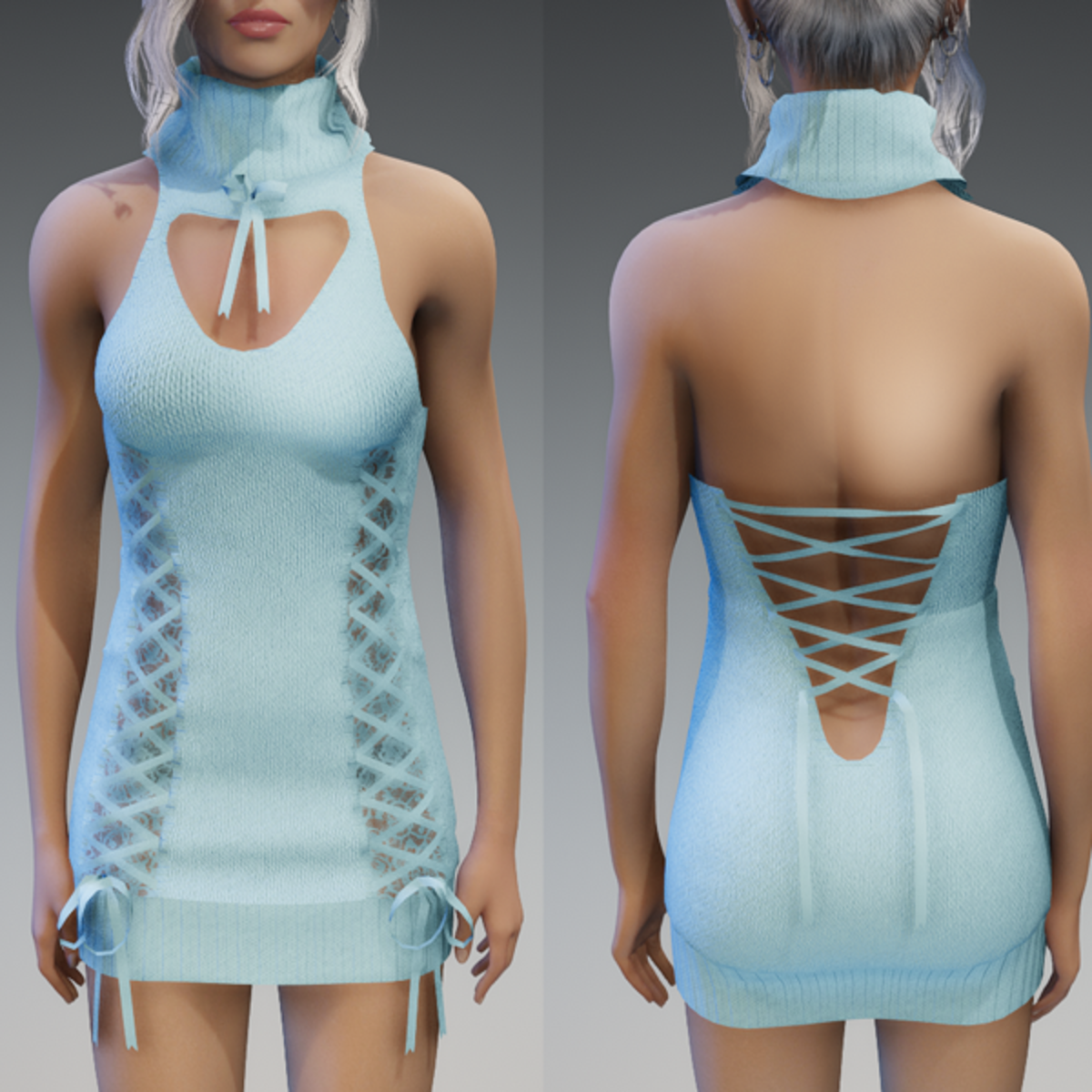 This cute mini dress comes with some lacing on the front and the back as well as some cute bows. Enjoy! <3