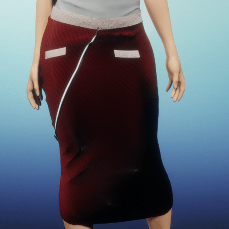 Cotton Slim Skirt with fine leather belt, zipper and welt pockets, inspired by 50s. This was made with Marvelous Designer.