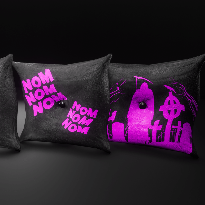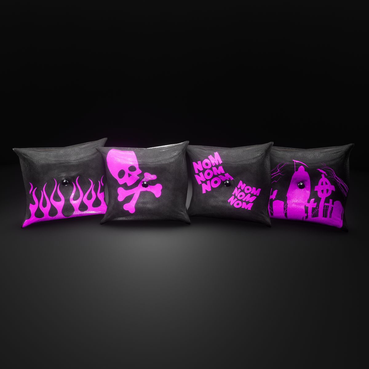 Black and pink leather pillow FAT PACK- Includes 4 pillows with different designs, each pillow is separate and can be moved, pillows are dynamic and can be grabbed and thrown with pillow sound effect, can be resold with your creations!..PILLOW FIGHT!!