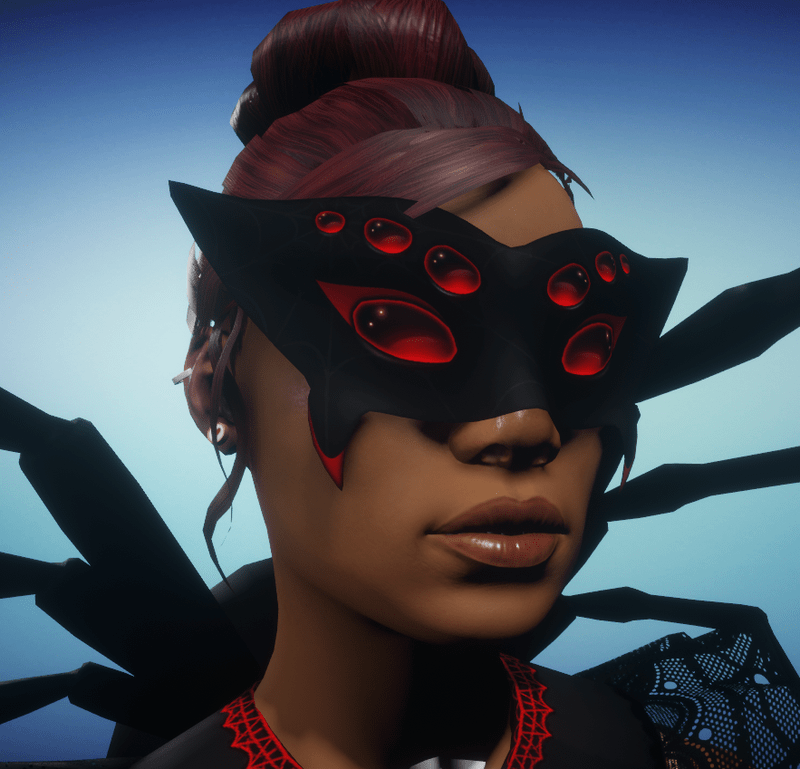 An elegant, painted, black spider-themed masquerade mask. The eight eyes also glow in the dark. This item is part of a costume, and meant to be worn with the Widow's Masquerade Top (However it can also be worn on its own if you prefer). https://store.sansar.com/listings/67132b7d-c191-42f7-b717-a36e8e7b87c1/widows-masquerade-top