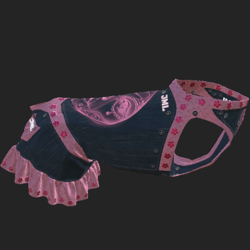 DOG DRESS DENIM PINK EMISSIVE you don't have to adjust only rotate and or scale to fit