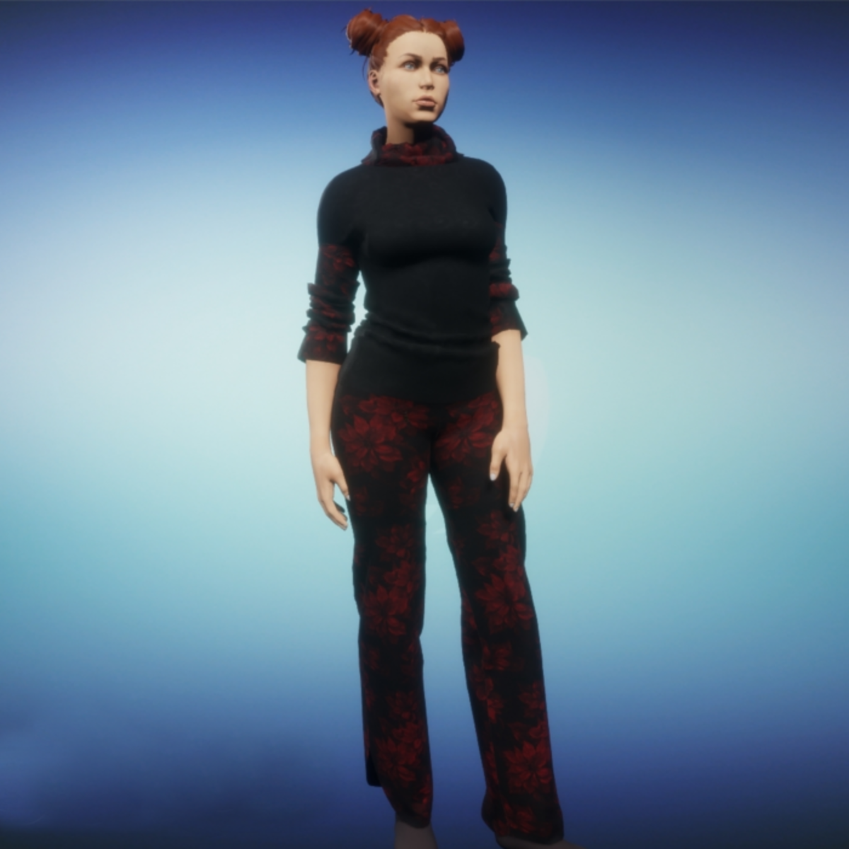 Sweater and pants attach at the same time. They may not be worn separately. When first putting the set on be sure to use SIMULATE CLOTH in the lookbook. This will fill out the clothing and give you the chance to tug on them to make them fit as you like. In the picture I have pulled the sleeves up to the elbows.
