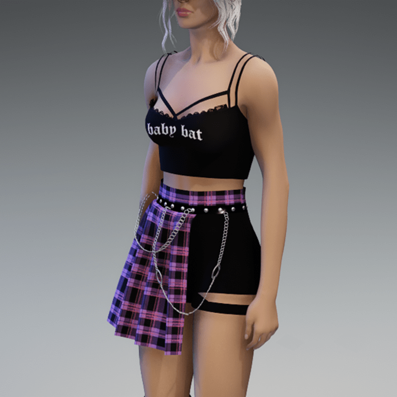 Half skirt, half short pants. It also comes with some chain-applications and a rivet belt. Enjoy! <3