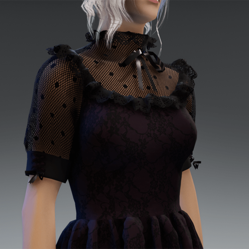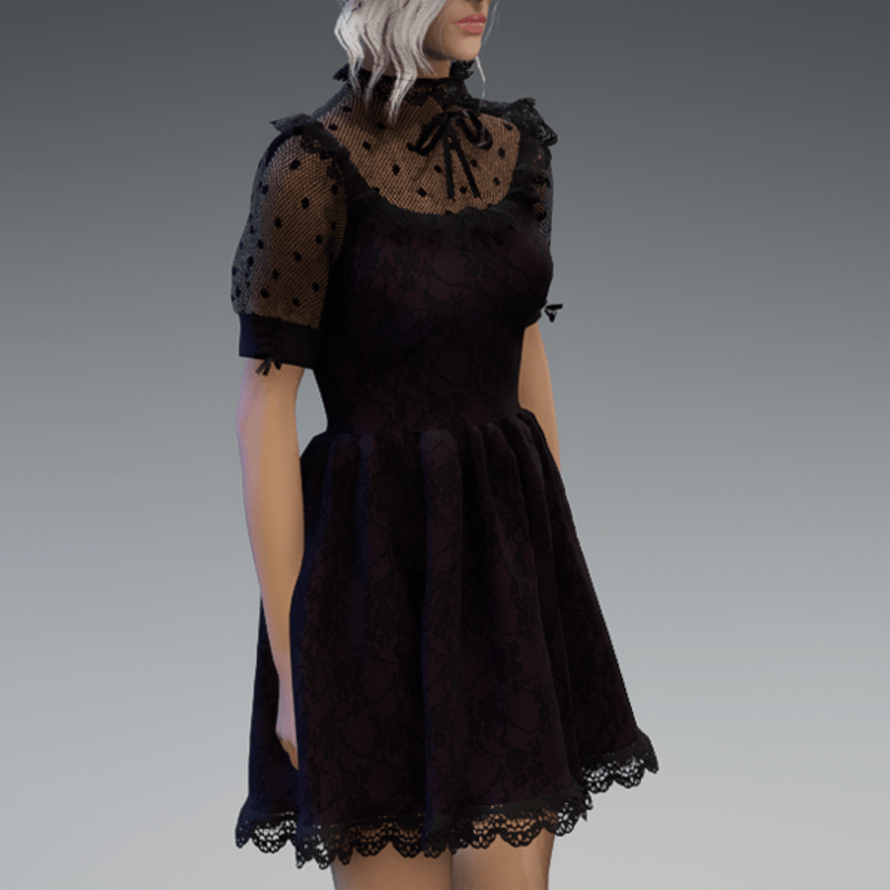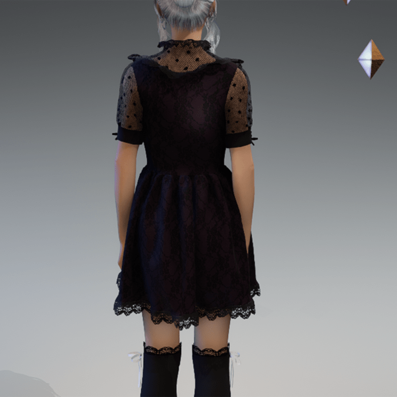 This cute lolita dress comes with some lace applications on the top and the bottom as well es a bow on the sides and the front. Enjoy! <3 If you're interested in the stockings, you can find them here: https://store.sansar.com/listings/9d04985f-f0c5-4df5-944a-3b73d5dddc80/black-and-white-lola-stockings