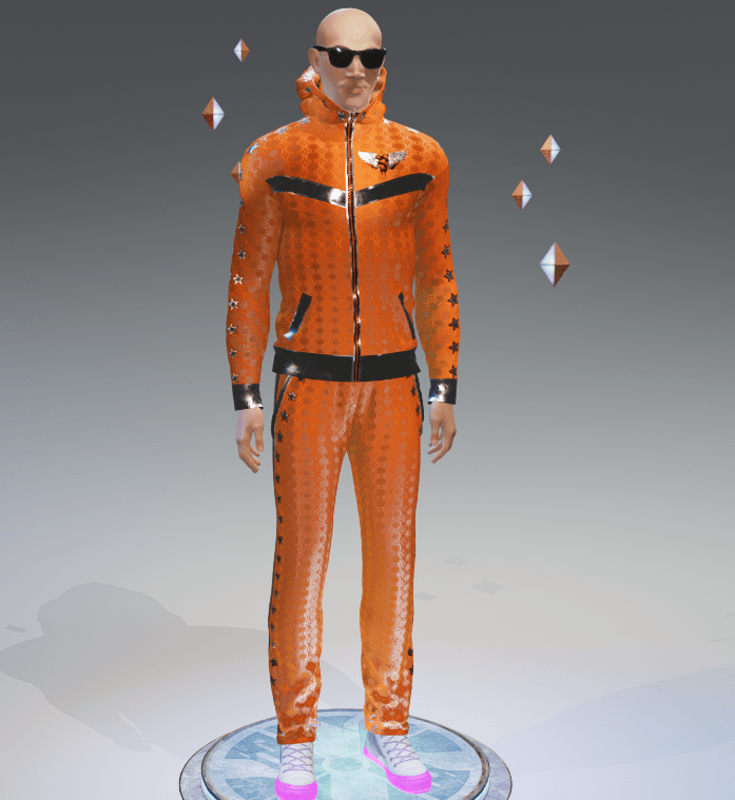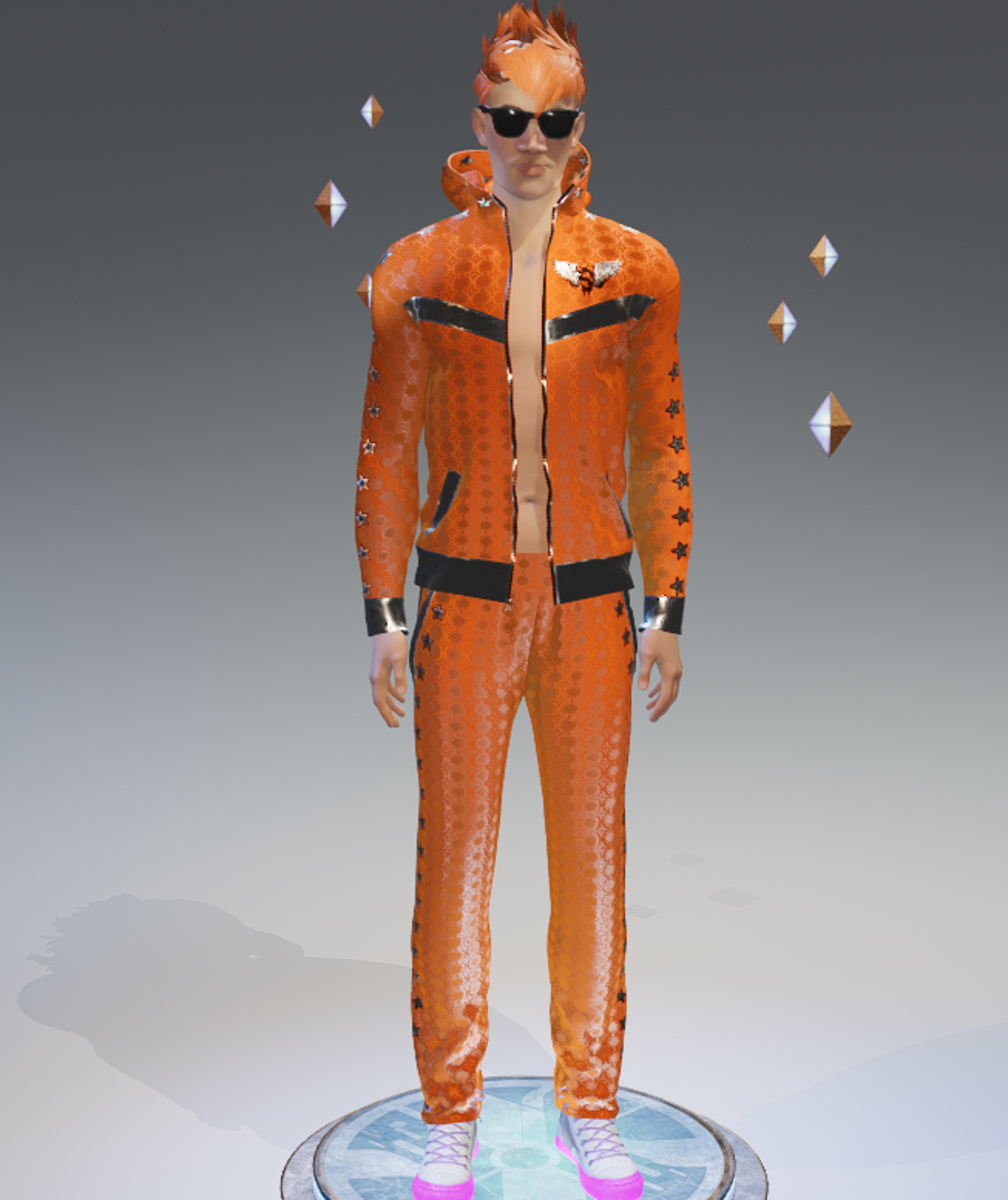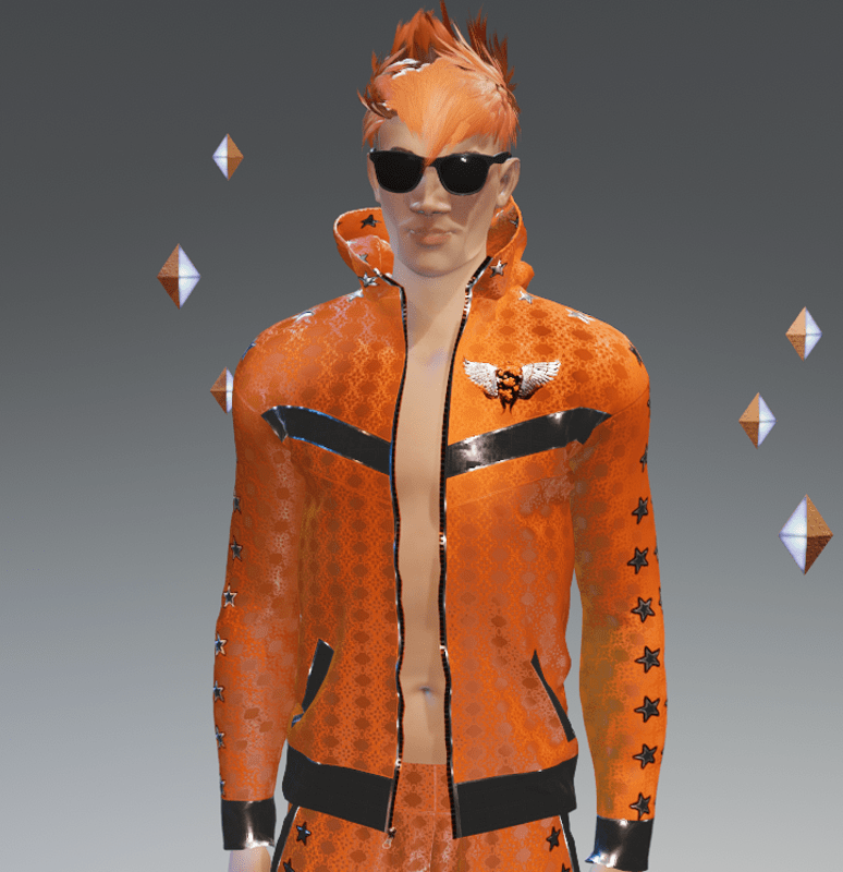 ***ORIGINAL DESIGN*** Be the star of the party with this Stars Orange-Silver VIP Fashion Sports Suit! Zips down all the way. Enjoy and have fun! :)