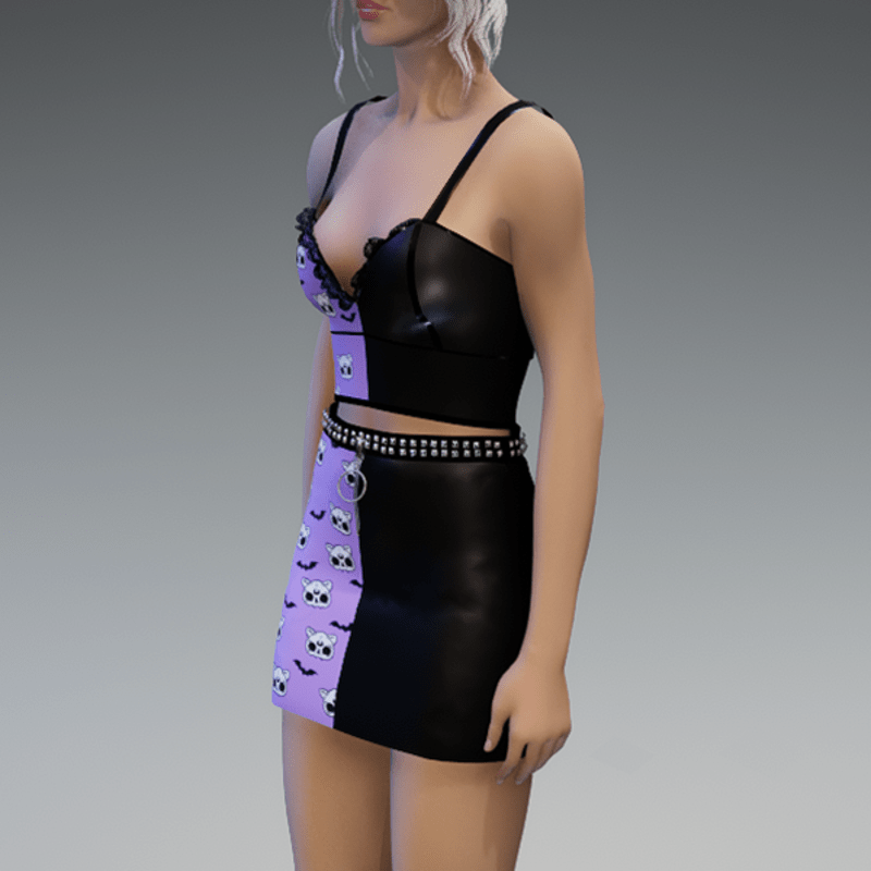 The skirt comes with a rivet belt on the top and a zipper on the front. Enjoy!