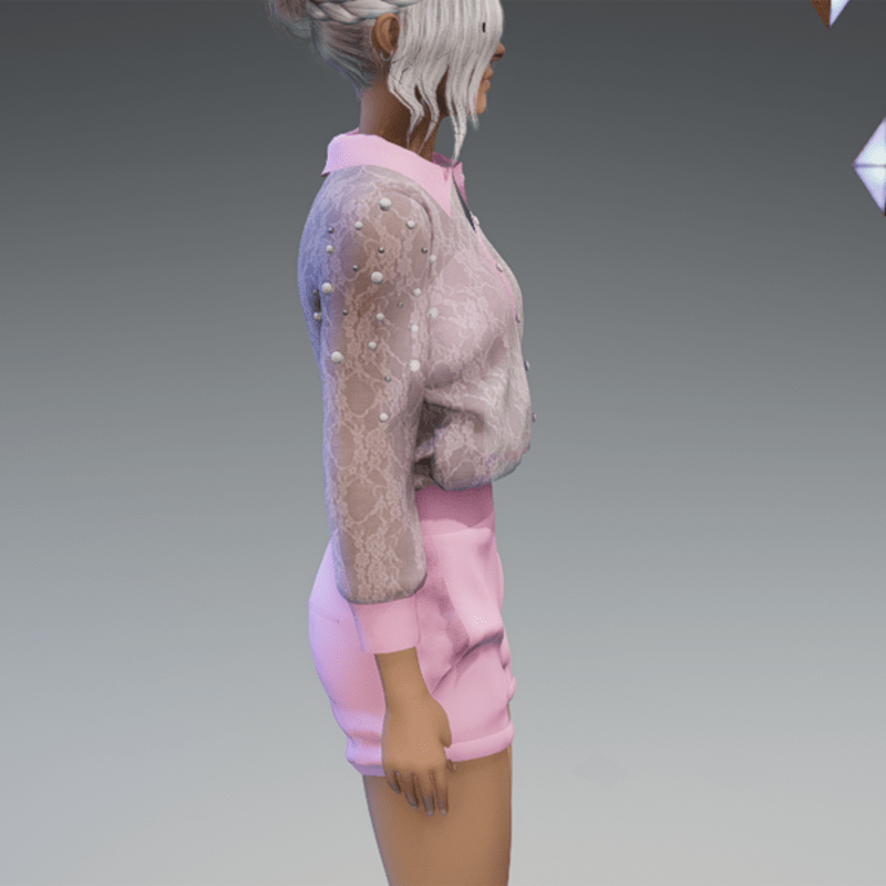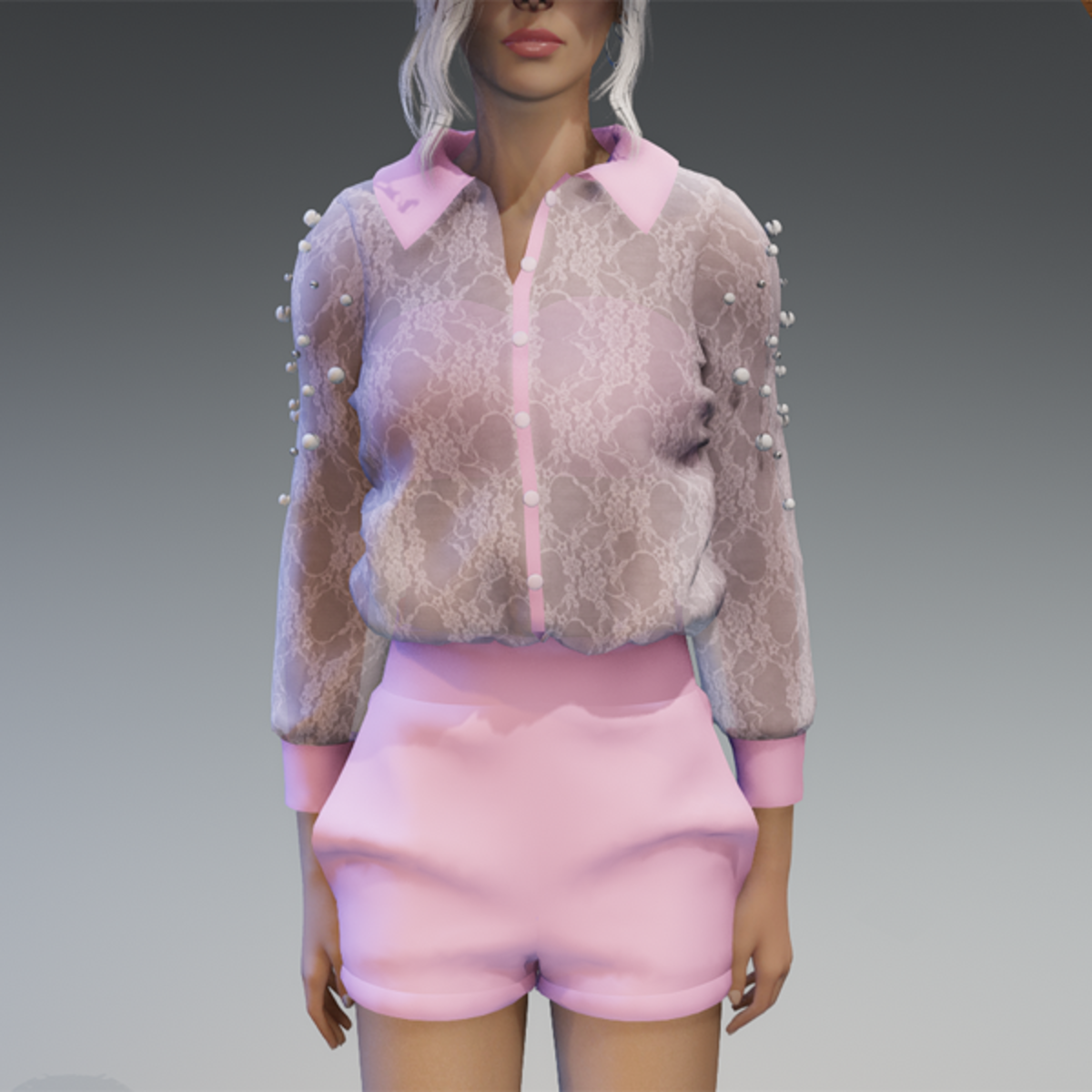 Elegant Blouse with Pearls & Short Pants Outfit V4 Pink