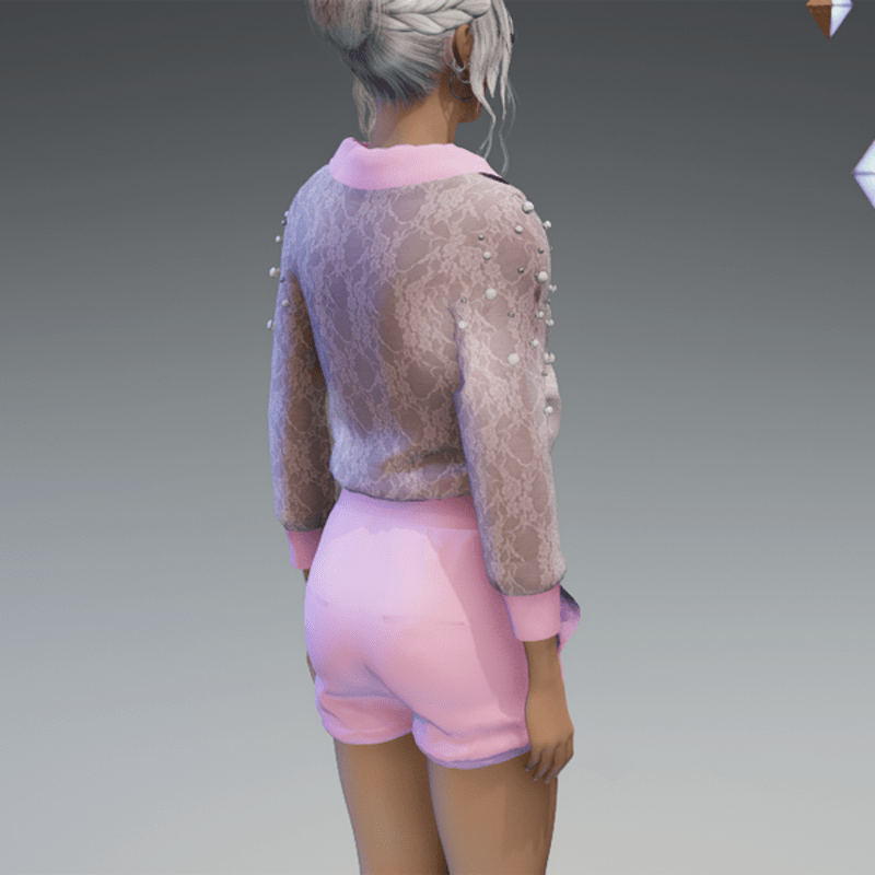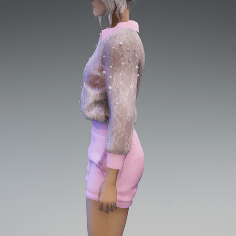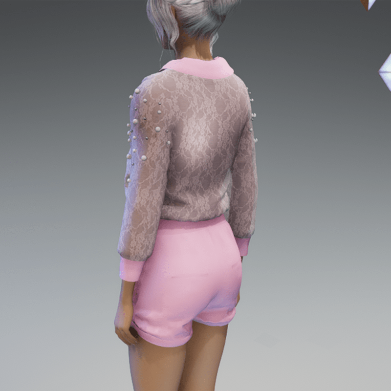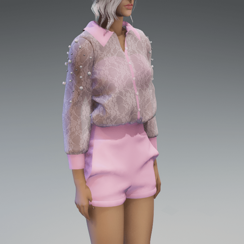 - Elegant Blouse with Pearls & Short Pants Outfit V4 Pink