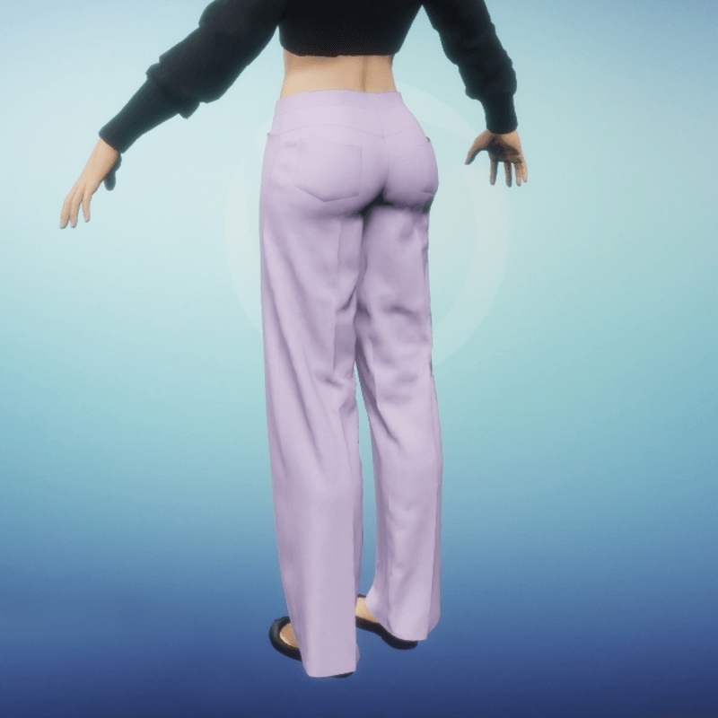 Women's dress slacks with front closure, welt pockets and back patch pockets. Front and back center legs have gently pressed folds for a dressy appearance. Be sure to animate cloth when wearing these slacks. Also, when layering, wear top layers first and then add lower layers. So if wanting to tuck in a shirt, where the shirt first then the slacks. If wanting to wear a top over the slacks wear the top first.