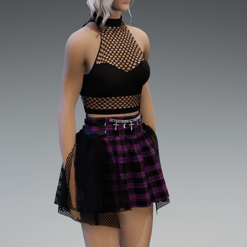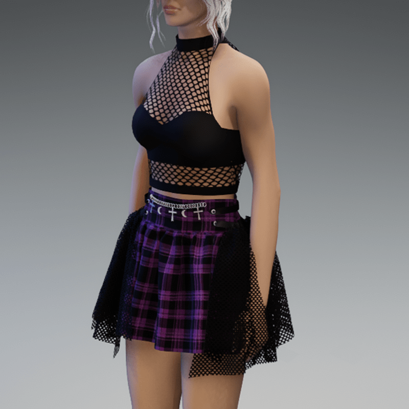 This skirt comes with some net-applications on the side as well as a chain on the front with some cross and moon pendant. Enjoy! <3