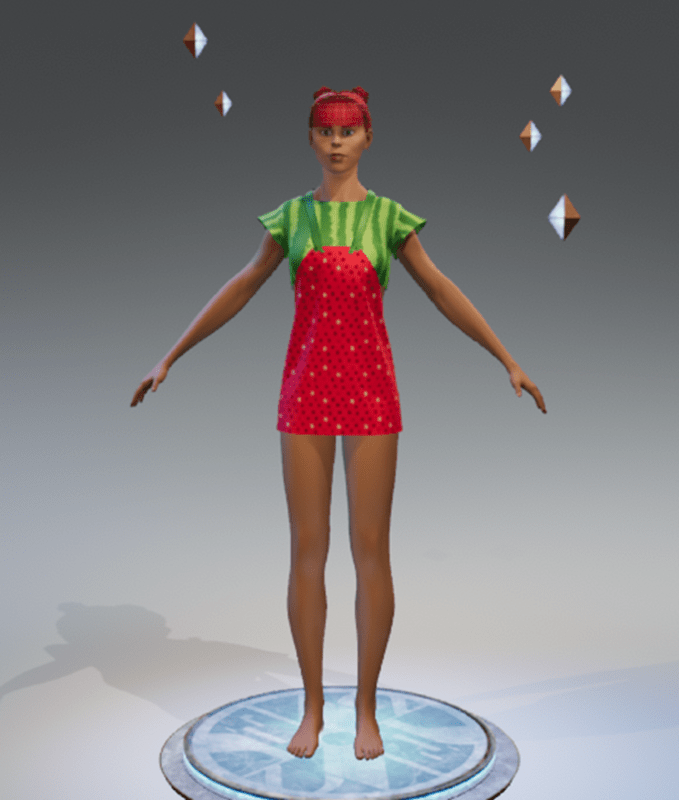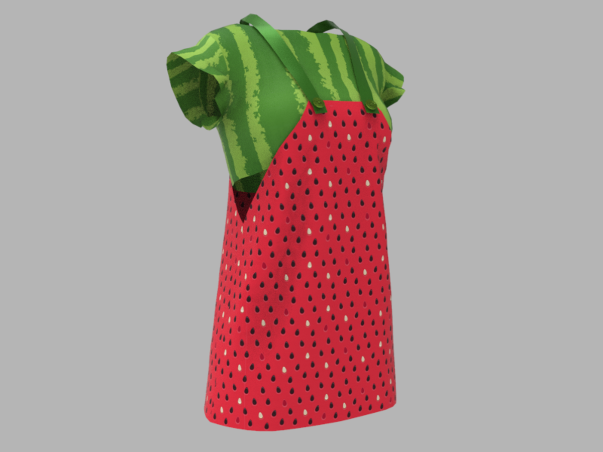 A cute salopette with watermelon texture