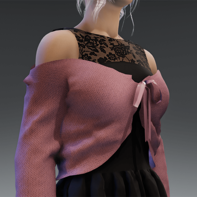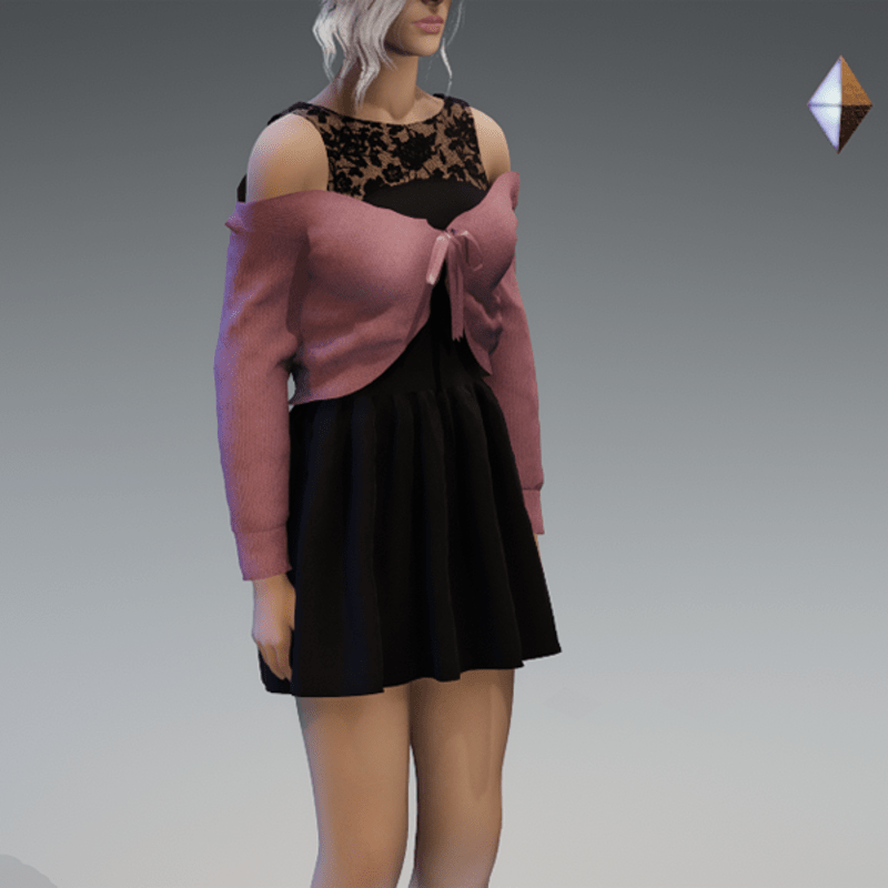 This dress comes in a lace fabric and a short jacket over it which has a bow on the front. Enjoy! <3