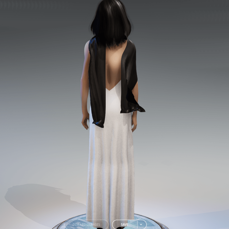 Free silky shawl scarf, it looks fabulous with the backless satin gown in my store. Made in Marvelous Designer, so you can adjust it to your hearts content. Enjoy Love, Lona