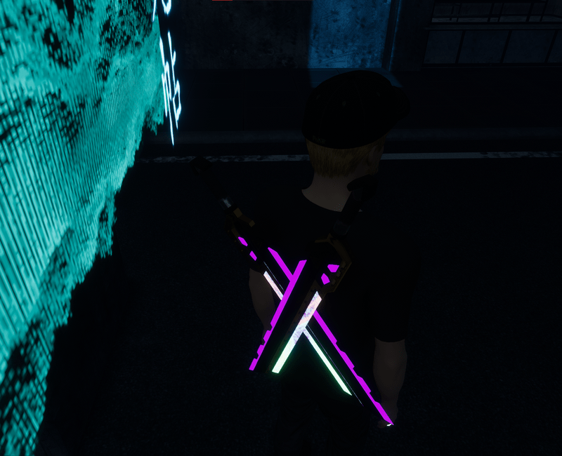 A cyberpunk style set of glowing swords to wear on your back. -Super low poly count -Hi-Res textures -Neck attachment slot