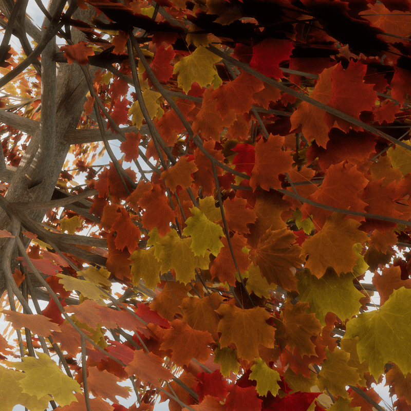 Autumn Maple Tree variation 4 2913 Triangles Trunk collision You can see it at The Worlds factory: https://atlas.sansar.com/experiences/lluisindigo/worlds-factory#Maple_AutumnB
