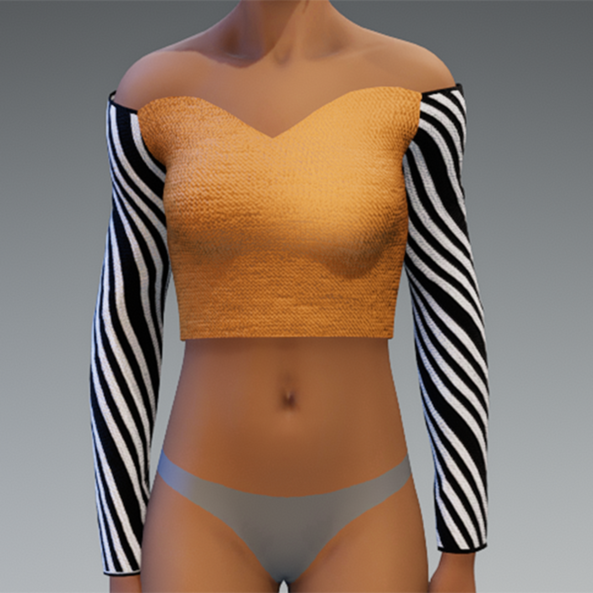 Tangerine & black and white striped sleeve top
