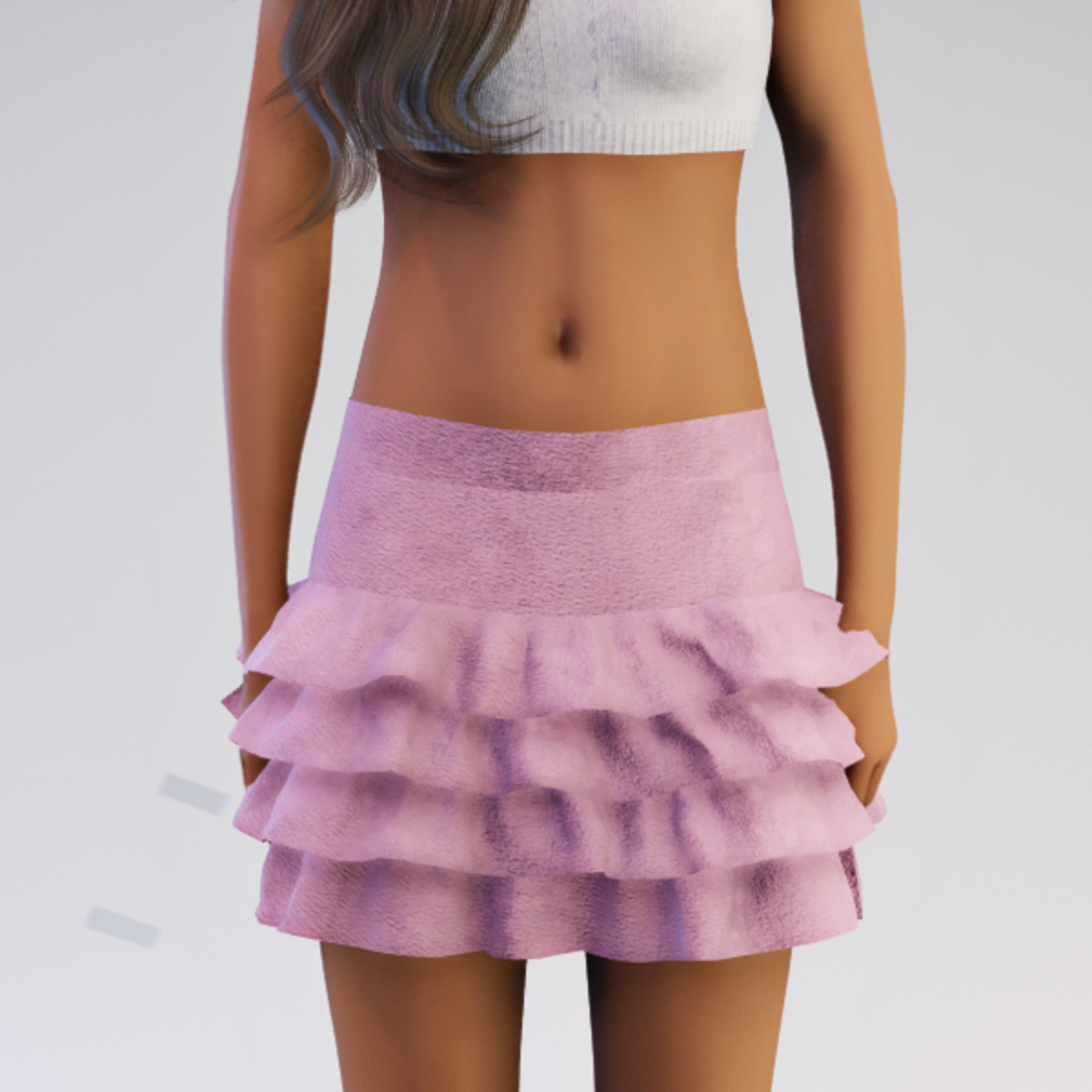 Darts, waistband and LOTS of ruffles make this little skirt the bell of the ball. Silky fabric. Fits Avatar 2.0 without adjustments. Try the DEMO!