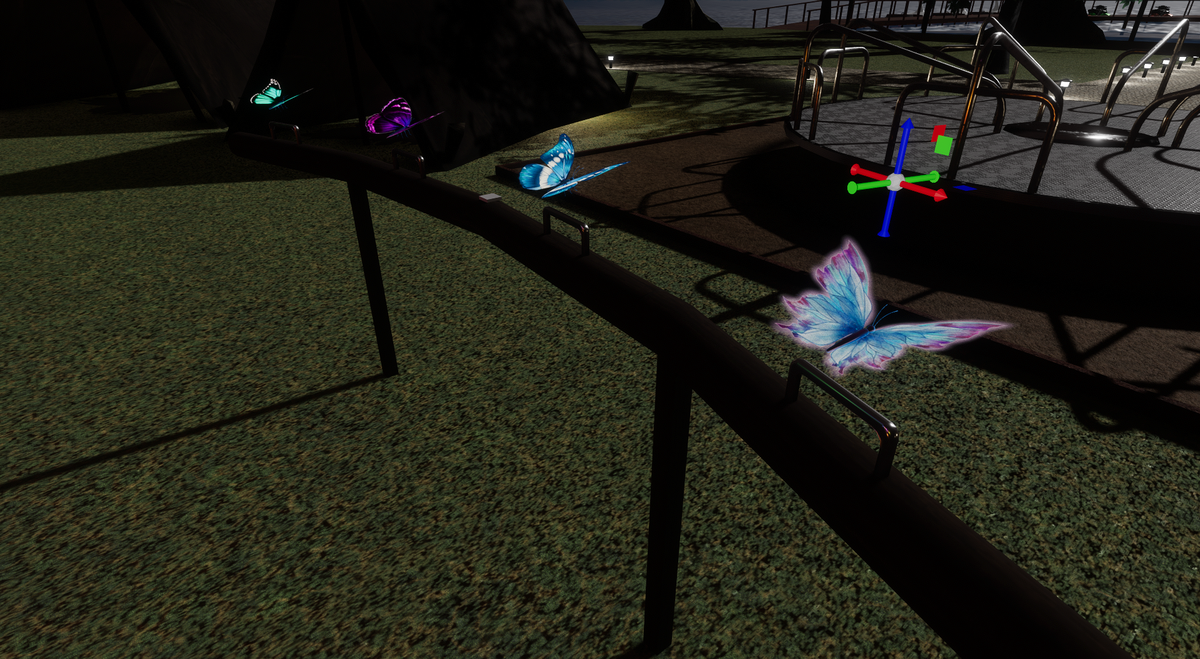Become a butterfly and fly through your world. works for Desktop and VR. - On desktop use right mouse button to rotate the camera view. The glider will fly towards the look direction. - In VR use your right hand to steer the glider. It will fly in the hand direction (not the arm so you can rotate by your hand only). Best experience is with 0° "Snap Turn Angle" in the VR settings and viewed from 3rd person (press right thumb stick). In 3rd person you can also turn the view and the glider with the right thumb stick (but be careful with VR sickness in this case).