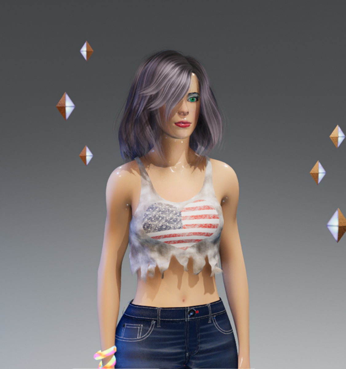 Cool-off, head to the beach and party with this Dirty Acid Wash US-Flag-Heart Tank Top! Roughed edges and some dirt, doesn't hurt anyone.. Enjoy and have fun! :) • Will fit all other avatars