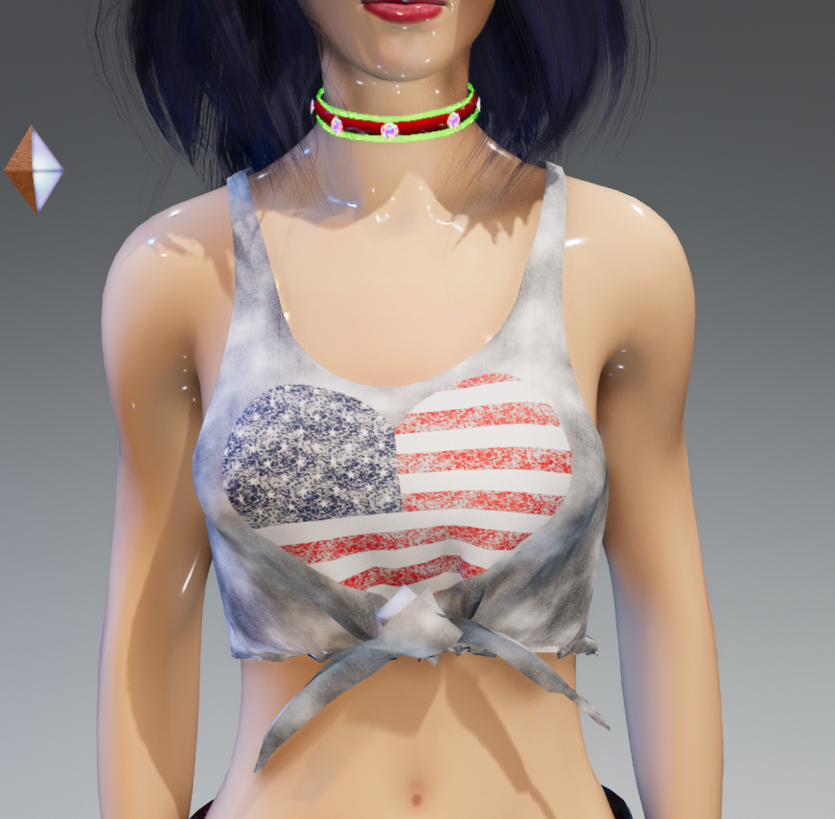 Cool-off, head to the beach and party with this Acid Wash US Flag Heart Tank-Top w/Knot! Enjoy and have fun! :) • Will fit all other avatars