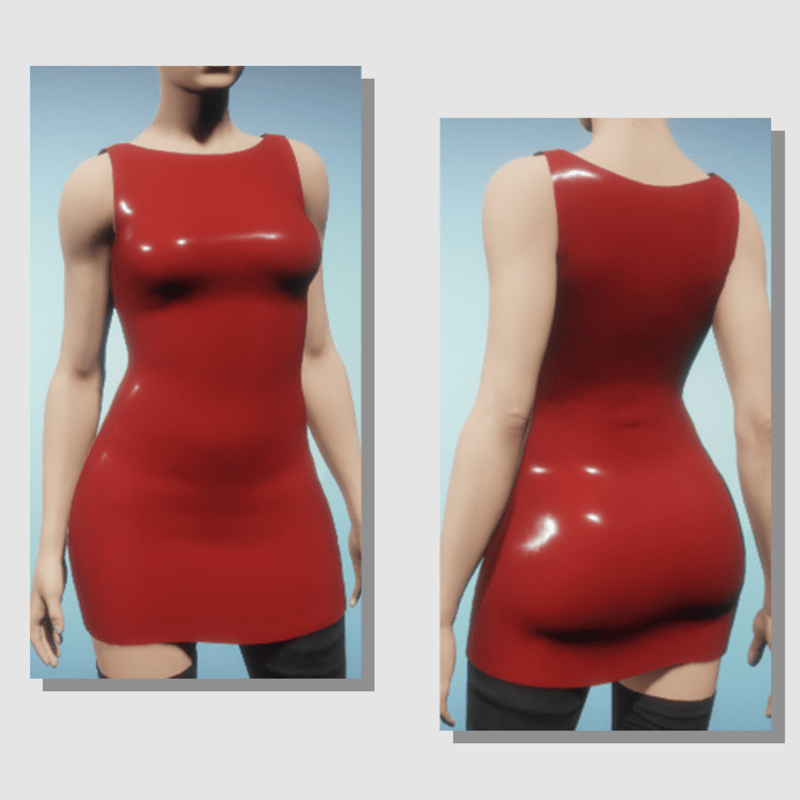A simple short dress with a shiny (latex-like) finish.