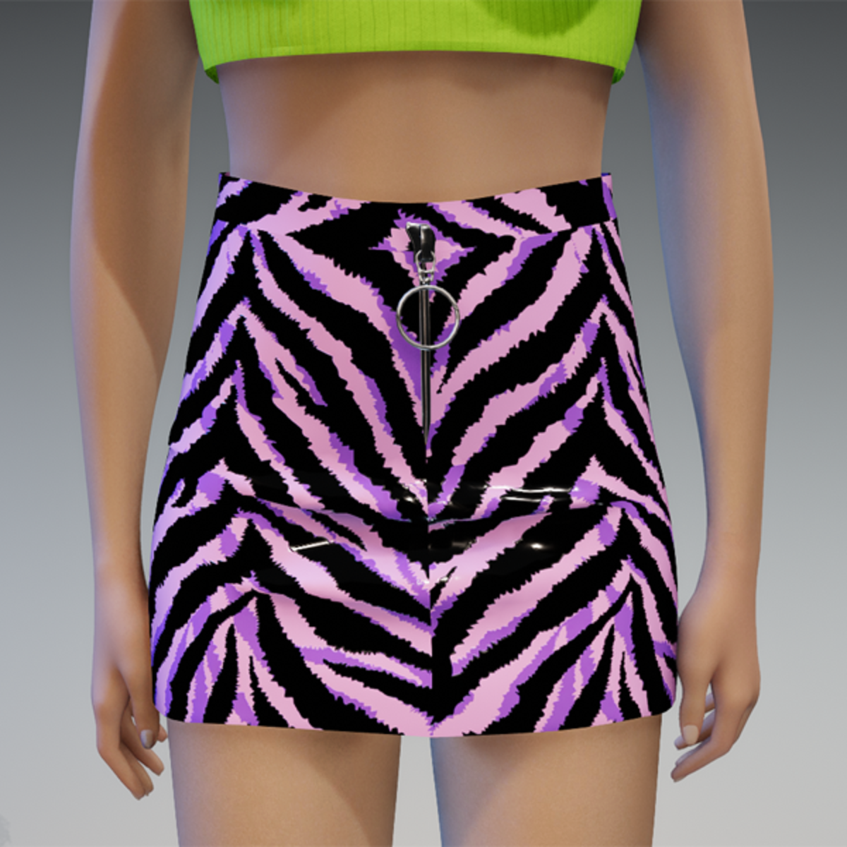 This mini skirt comes with a cute tiger plastic pattern and a zipper on the front. Enjoy! <3