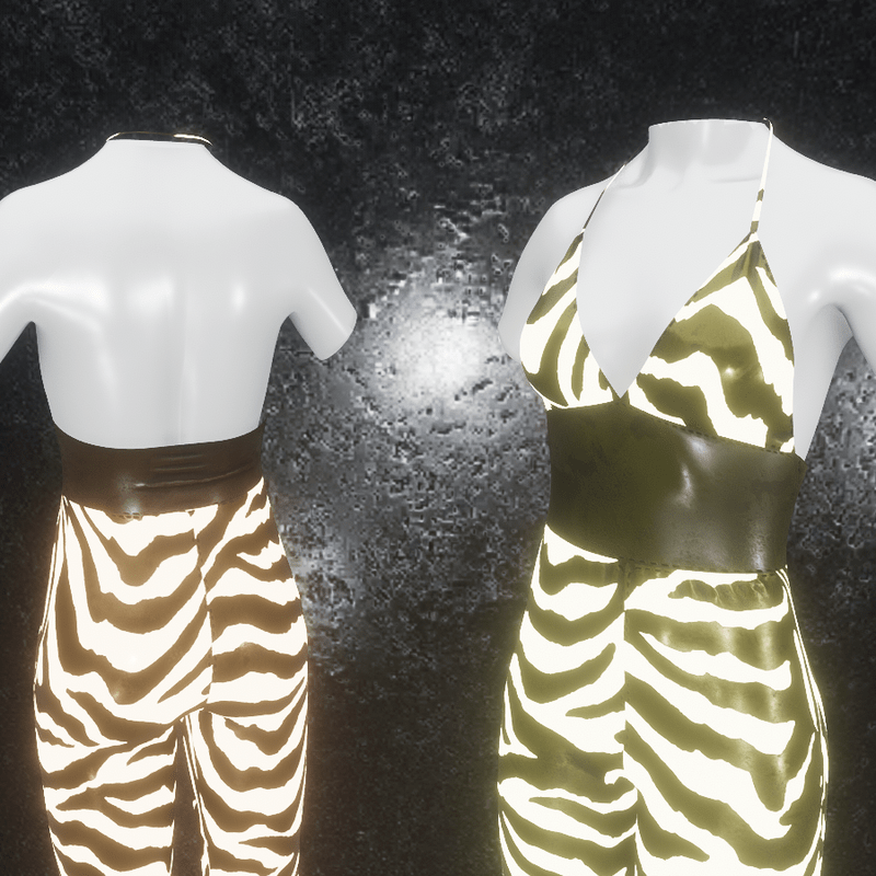 High quality jumpsuit made of realistic metallic material with glowing zebra pattern readdy for avatar 2.0. Please don´t forget the ratings ;) Feel free to simulate the clothes before wearing it to adjust it optimally. Visit my store inworld: https://atlas.sansar.com/experiences/randdy/rr-fashion-shop