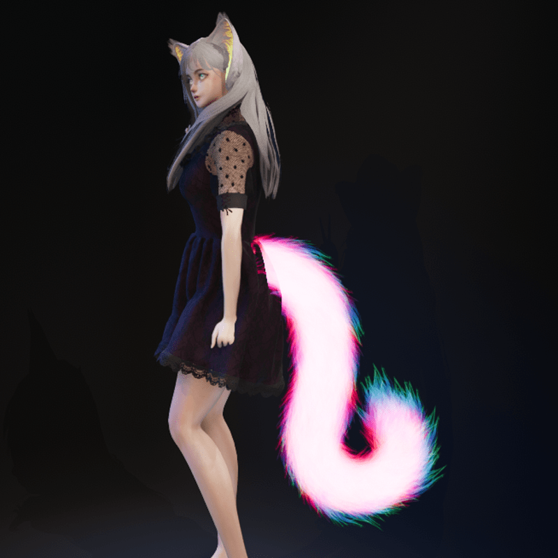Big luxurious Flooofy Cat tail. Animated Rainbow Edition! See example Gif for what the animation looks like in game: https://gyazo.com/c490afeae61a77677d9eb113db0d0d54 The necklace slot version so it can be rotated and scaled and is Fully Transformable. (If you need to wear a necklace with the tail, a clothing slot version is also available on store and is not adjustable but does have better rigging) Make sure to set your inventory to 'Show all accessories' if the Tail does not show up immediately for you in the accessories tab. (See the example picture on this listing for reference.) Will fit both Female and Male framed avatars. The rigging works well enough on the necklace slot version but does have minor movement inconsistencies with the rest of the body unfortunately (waiting for a tail slot attachment point) Contact "TheNick-1981" through Sansar or Sansar discord if you need re-rigging or there is a problem etc.