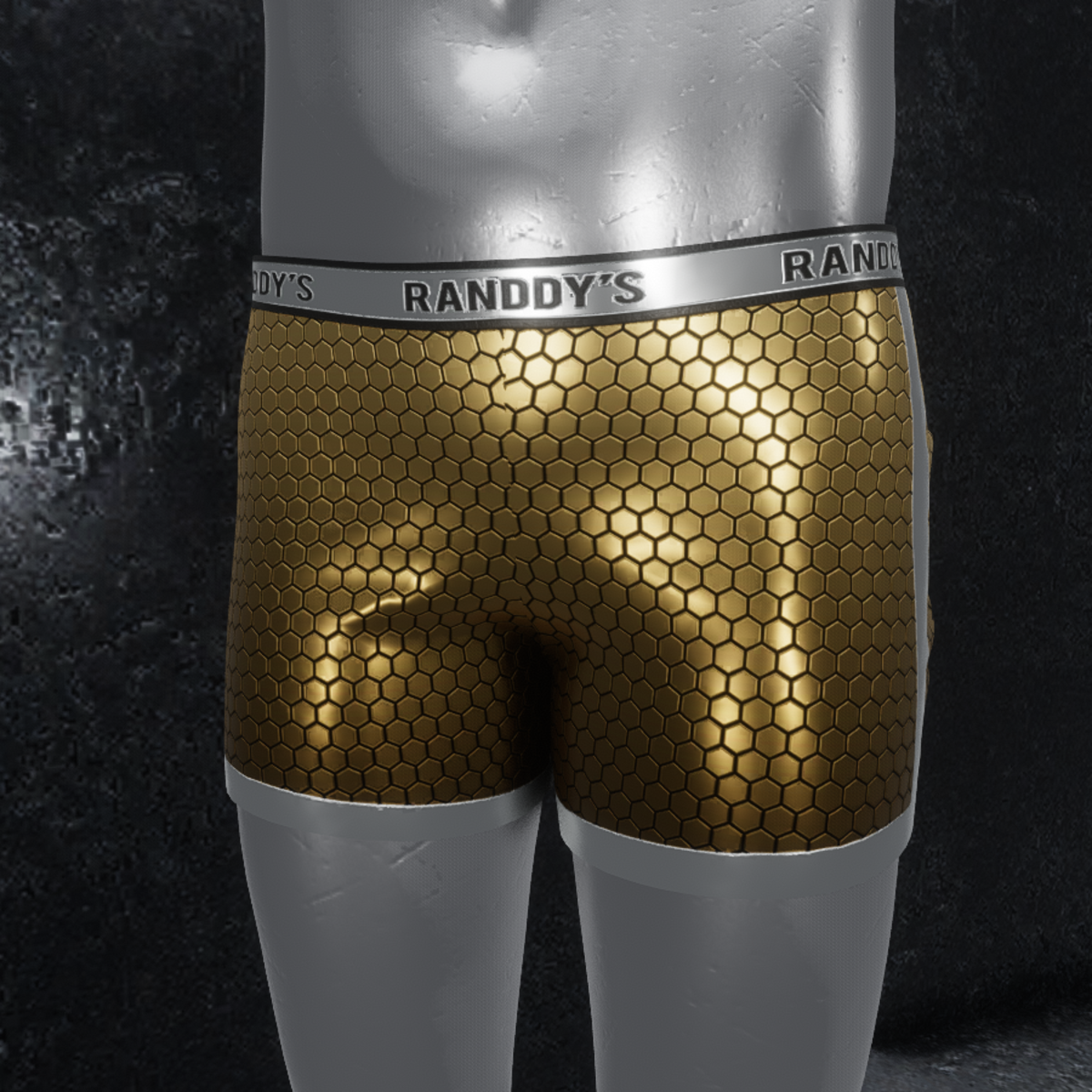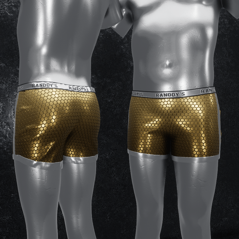 High quality boxer briefs made of realistic metallic hexagon material with logo on the waistband, readdy for avatar 2.0. Please don´t forget the ratings ;) Feel free to simulate the clothes before wearing it to adjust it optimally. Visit my store inworld: https://atlas.sansar.com/experiences/randdy/rr-fashion-shop