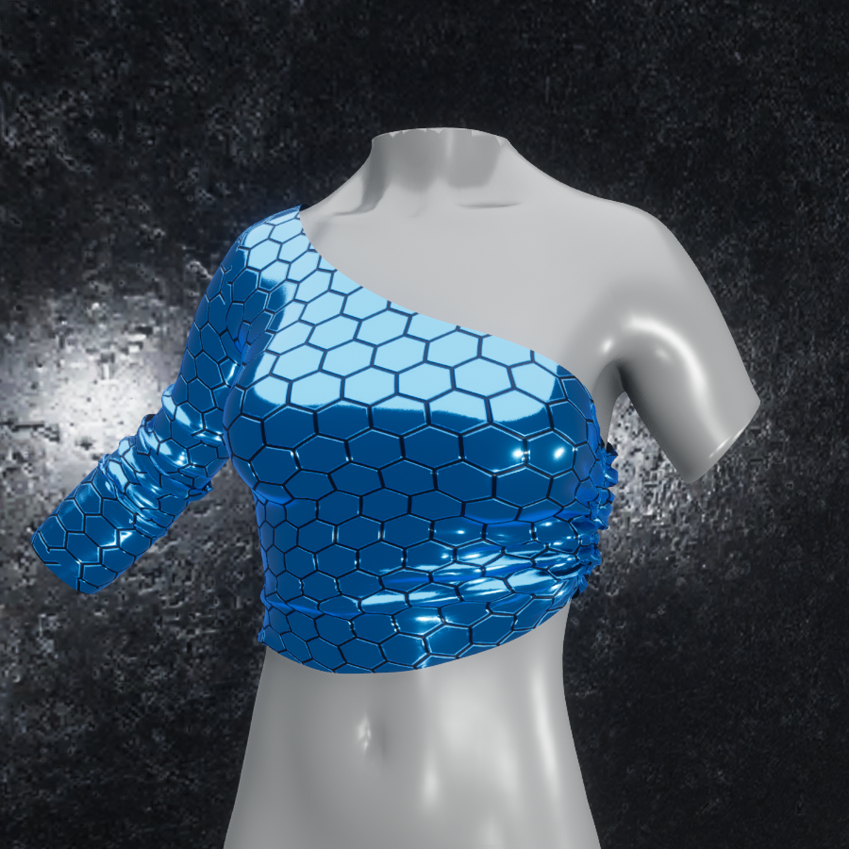Sexy top made with high quality metallic chrome material with fine hexagon pattern readdy for avatar 2.0. Please don´t forget the ratings ;) Please simulate the clothes before wearing it to adjust it optimally. Visit my store inworld: https://atlas.sansar.com/experiences/randdy/rr-fashion-shop