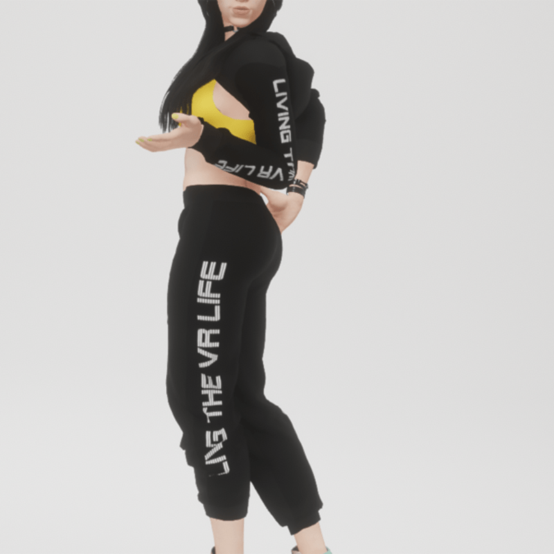 The "Living The VR Life" - sweatpants from my upcoming collection. For the full outfit showing in the images, check out my hodie with yellow top included. (IMPORTANT: Please note, that it can happen, that some of my clothes doesn't fit the new avatar 2.0 right after you're are wearing it. On some point you have to use the "scale" and "rotate" option until it will fit right. I'm sorry about that "time-eater" at the moment.)