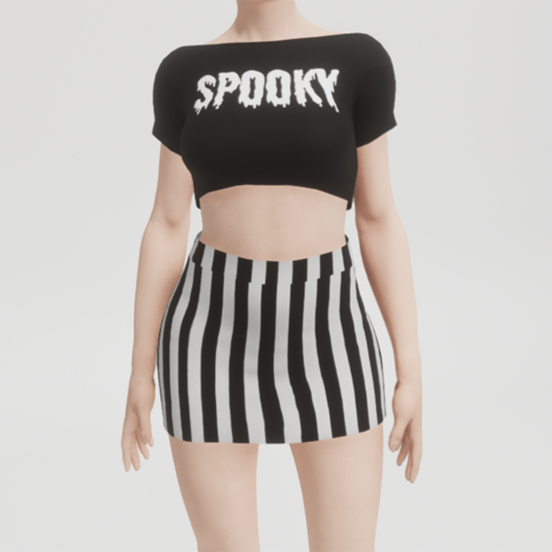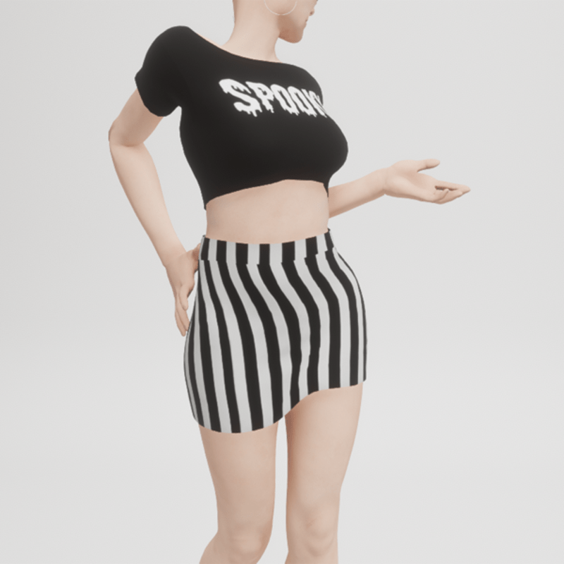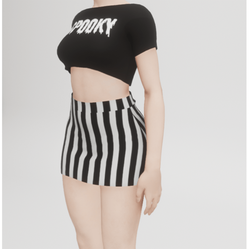 My mini skirt, now with a black and white striped optic! If you are interested in the spooky top, showing in the images, just look for it in my store! Enjoy!