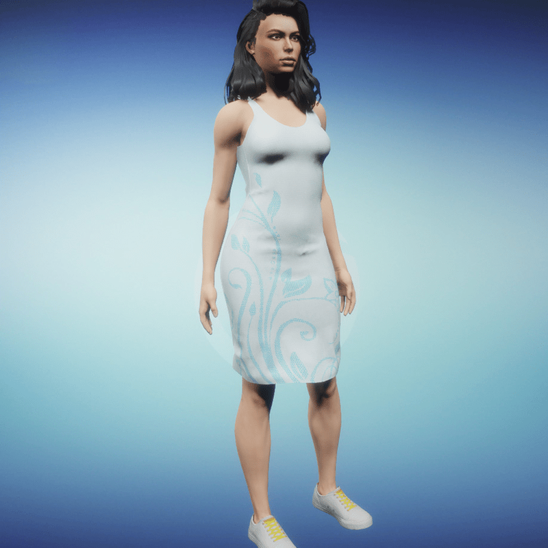 Summer dress with floral pattern. Please simulate the clothes before wearing to adjust it optimally.