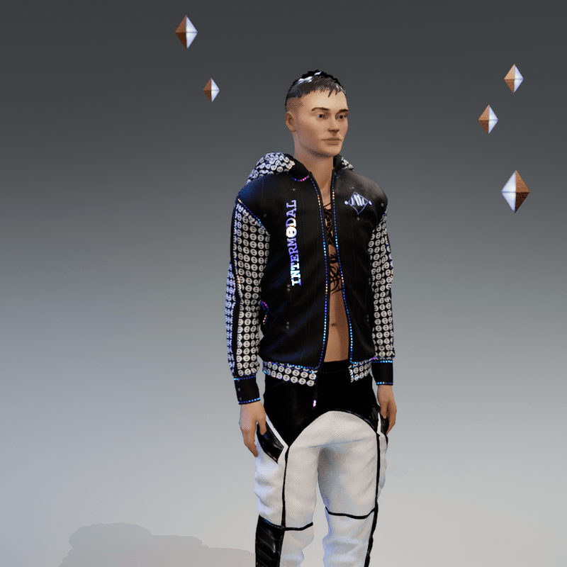 hoodie designed in collaboration with INTERMODAL INTERMODAL is a small electronic music collective that aims to support and encourage creative expression in virtual reality and events is animated and glows in the dark see preview here : https://gyazo.com/e94412ec6afcb6bca460f3f1e9094f30 fits ALL avatars in the store only a little manipulation if needed You can zip or unzip creating different styles For any problem, or suggestion contact me. @ jamal-7001 Thank you