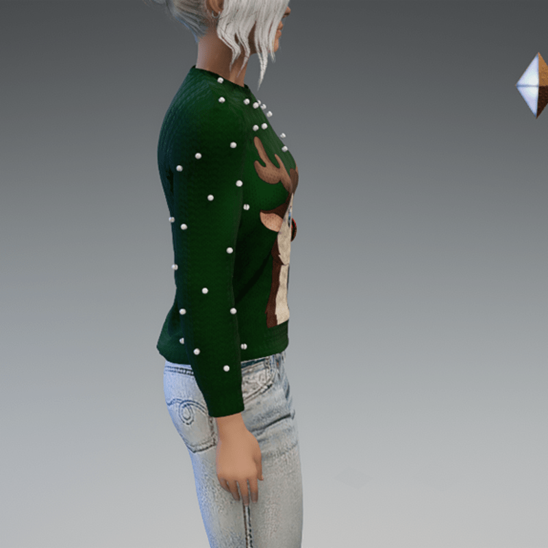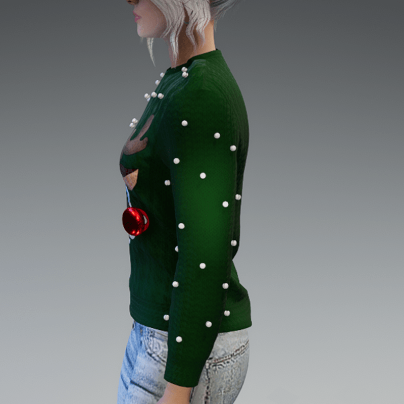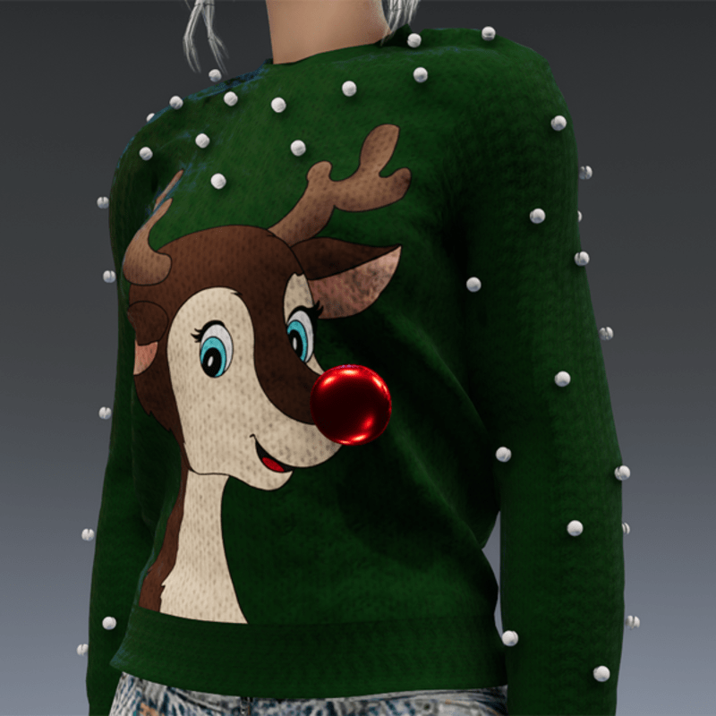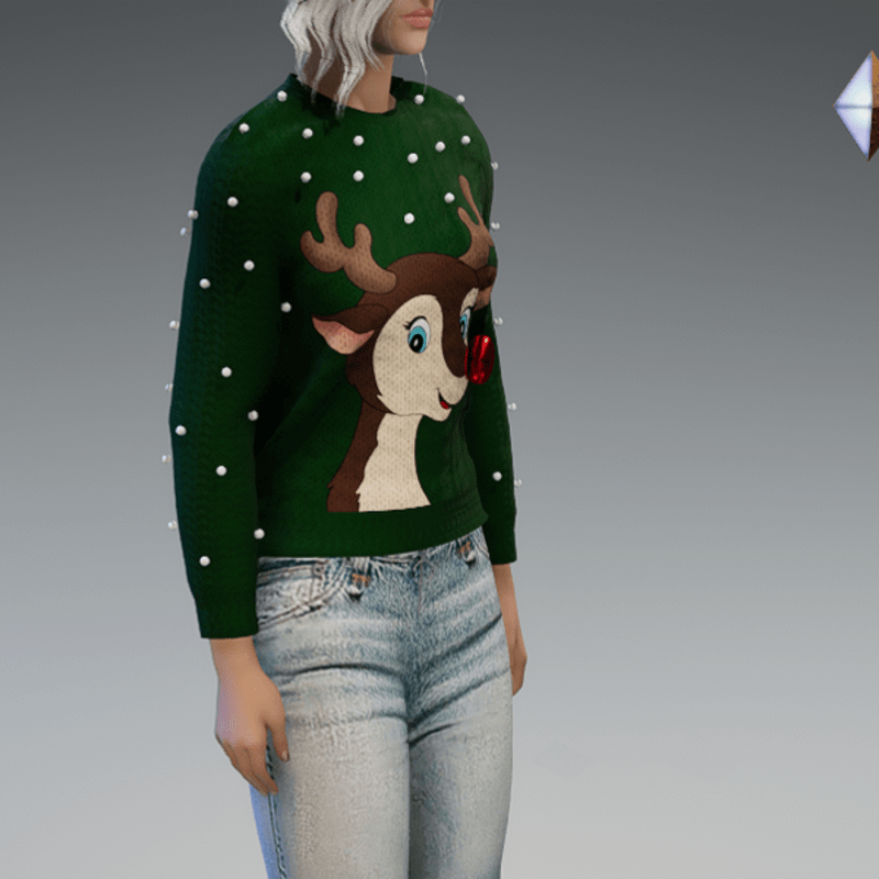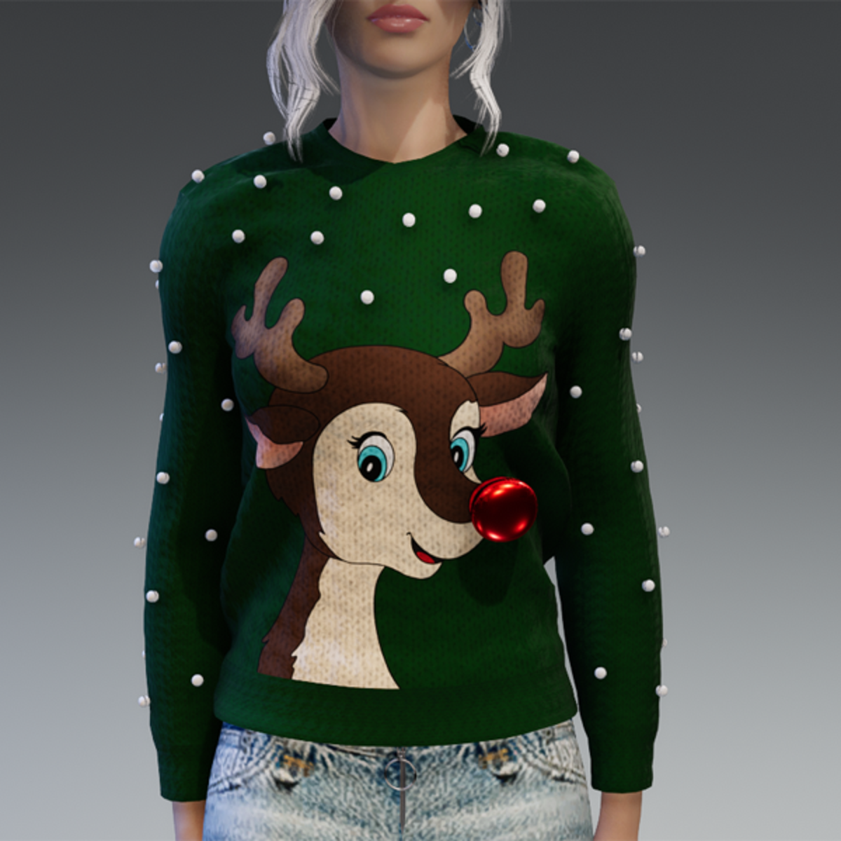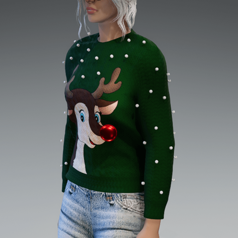 This christmas sweater comes with my rudi-drawing who has a big red button on the nose. There are also lots of white pearls for some snowing-vibes. Enjoy! <3