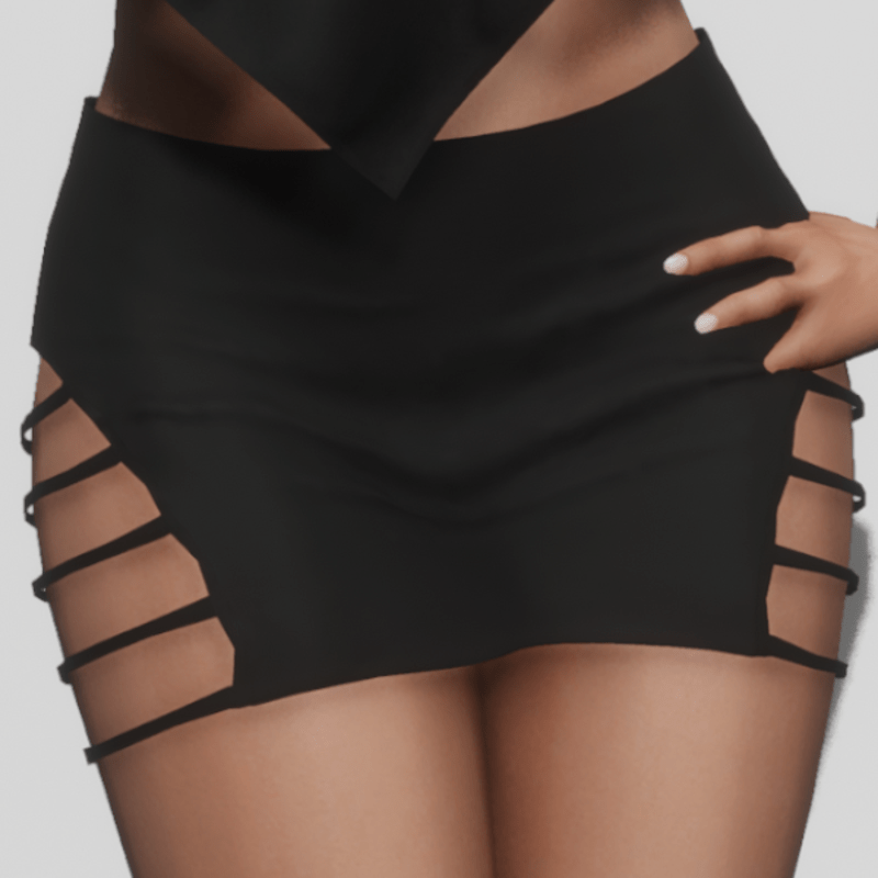Tight Fitting Mini Skirt with Cut Out Sides - Black